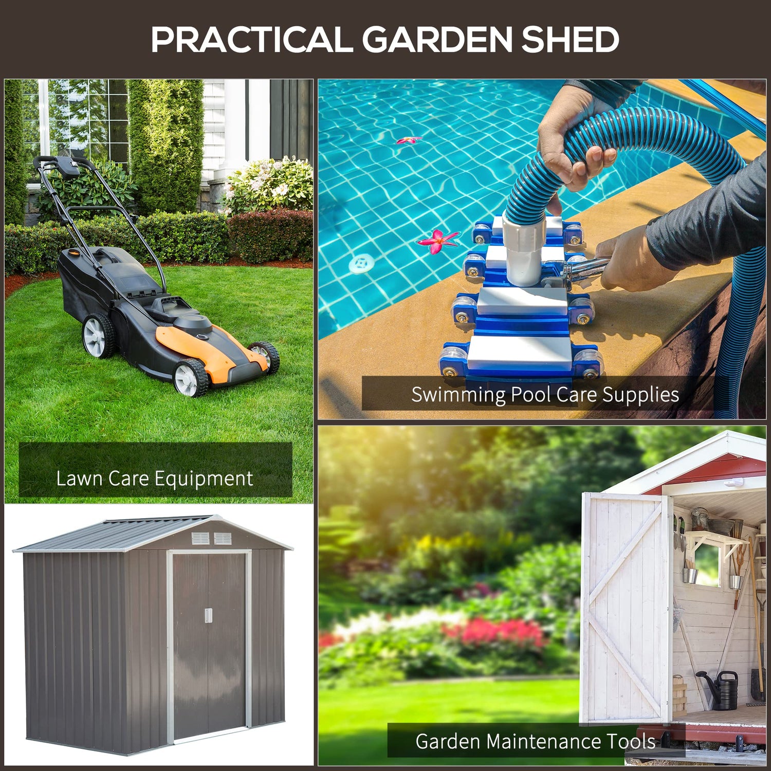 Outsunny 7' x 4' Outdoor Storage Shed, Garden Tool Metal Shed with Foundation Kit, Double Lockable Door, Air Vents and Sloping Roof, for Backyard, Patio, Lawn, Gray