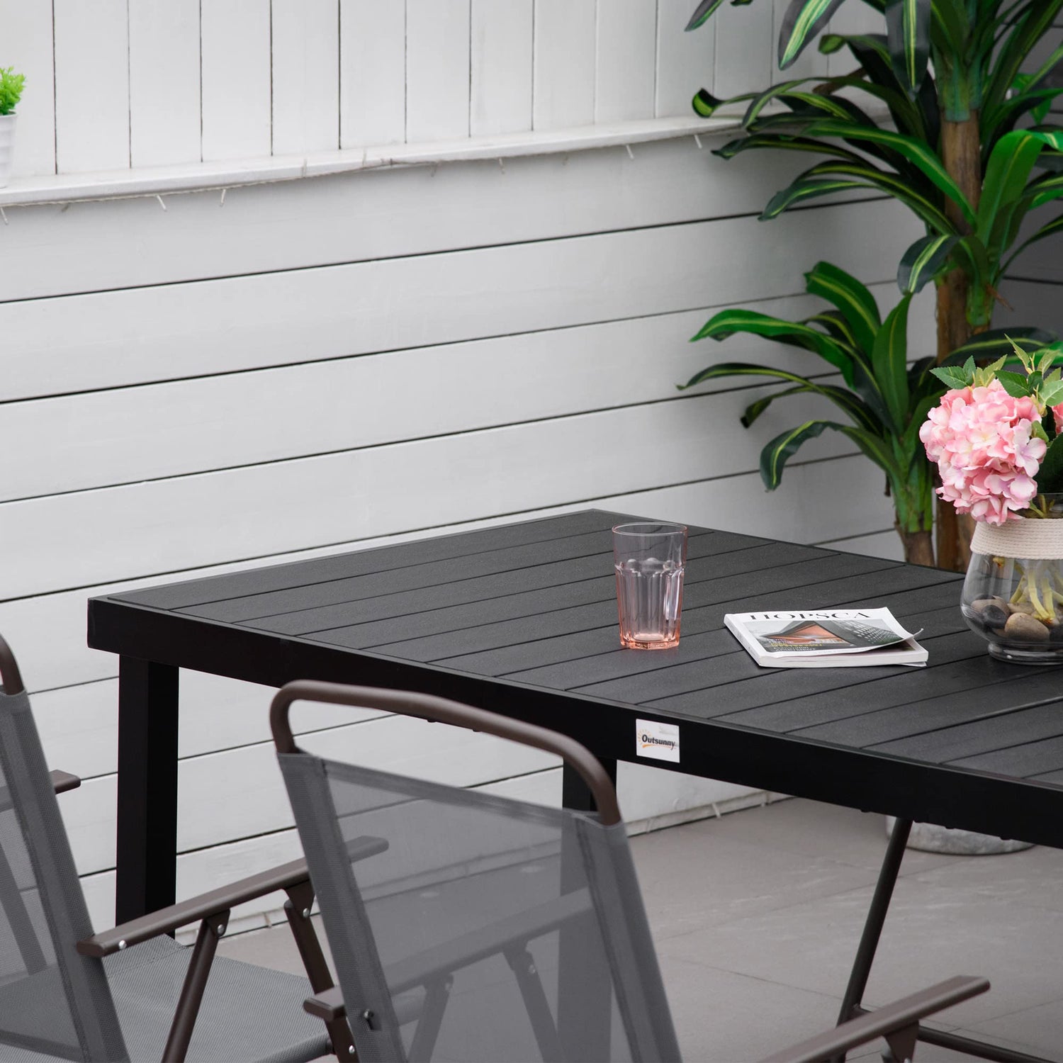Outsunny 75" x 35" Outdoor Dining Table for 8 People, Rectangular Aluminum Frame Garden Table with All-Weather Faux Wood Top for Garden, Lawn, Patio, Black