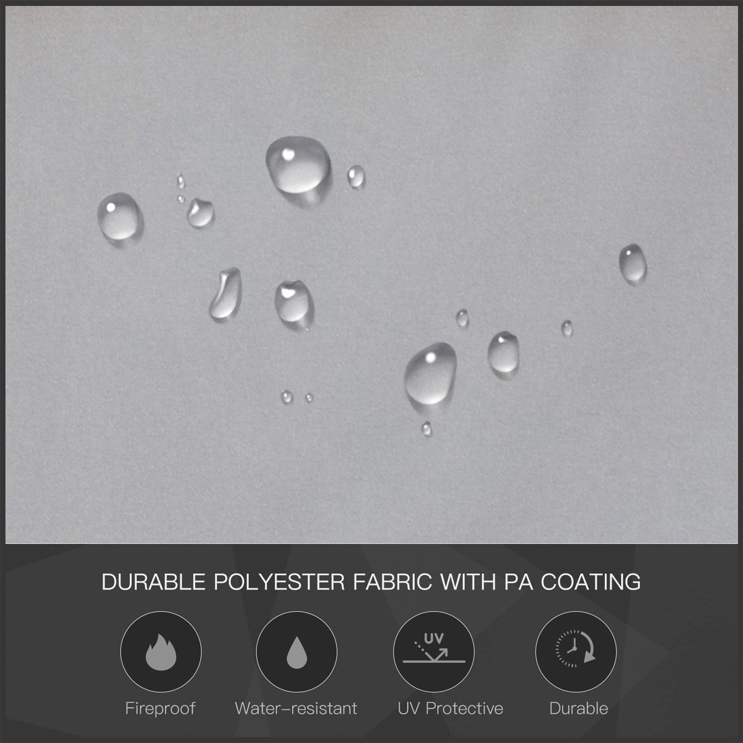 - Weather-Fighting: Polyester top canopy with PA-coating, extra supporting bar, and side awning are UV protective, water-fighting, and fire retardant. This grill shelter provides shade and cover from the sun and rain while still allowing for open flames and cooking functions.
