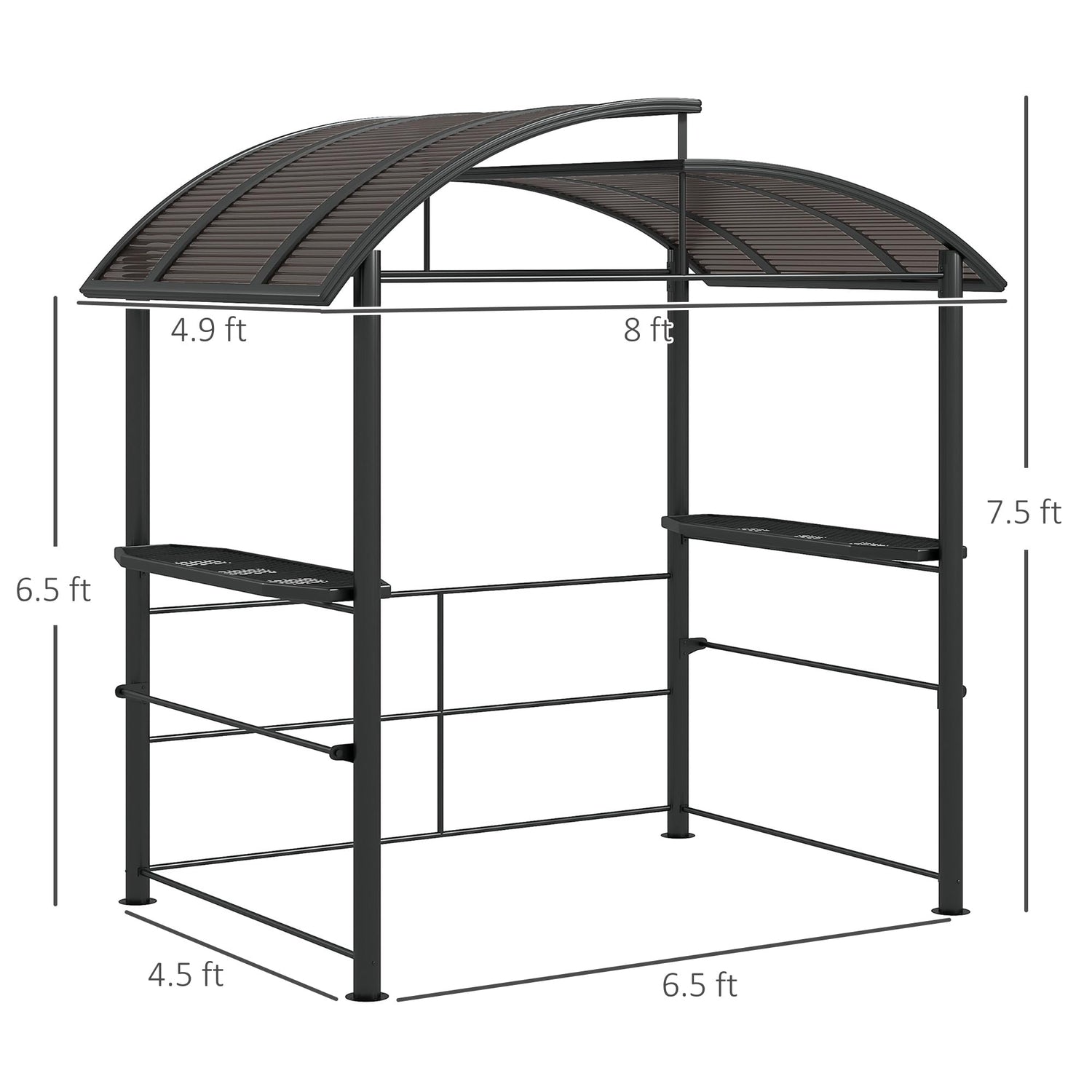 Outsunny 8' x 5' Grill Gazebo Shelter with Interlaced Vented Polycarbonate Roof, Outdoor BBQ Canopy with Side Shelves, Steel Frame for Garden, Patio, Backyard, Dark Gray