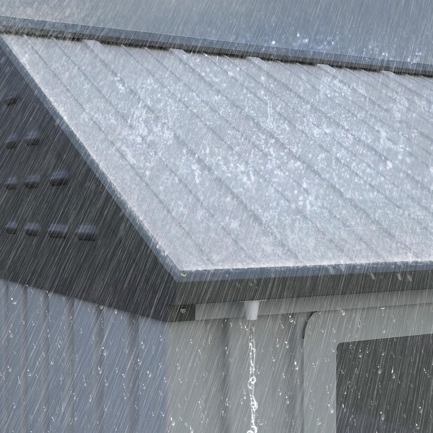 - Slanted Metal Roof: The roof of our outdoor storage shed is composed of striped and slanted galvanized steel. Combining form and function, it helps water weight slide right off, increasing its life span and allowing storage over winter.