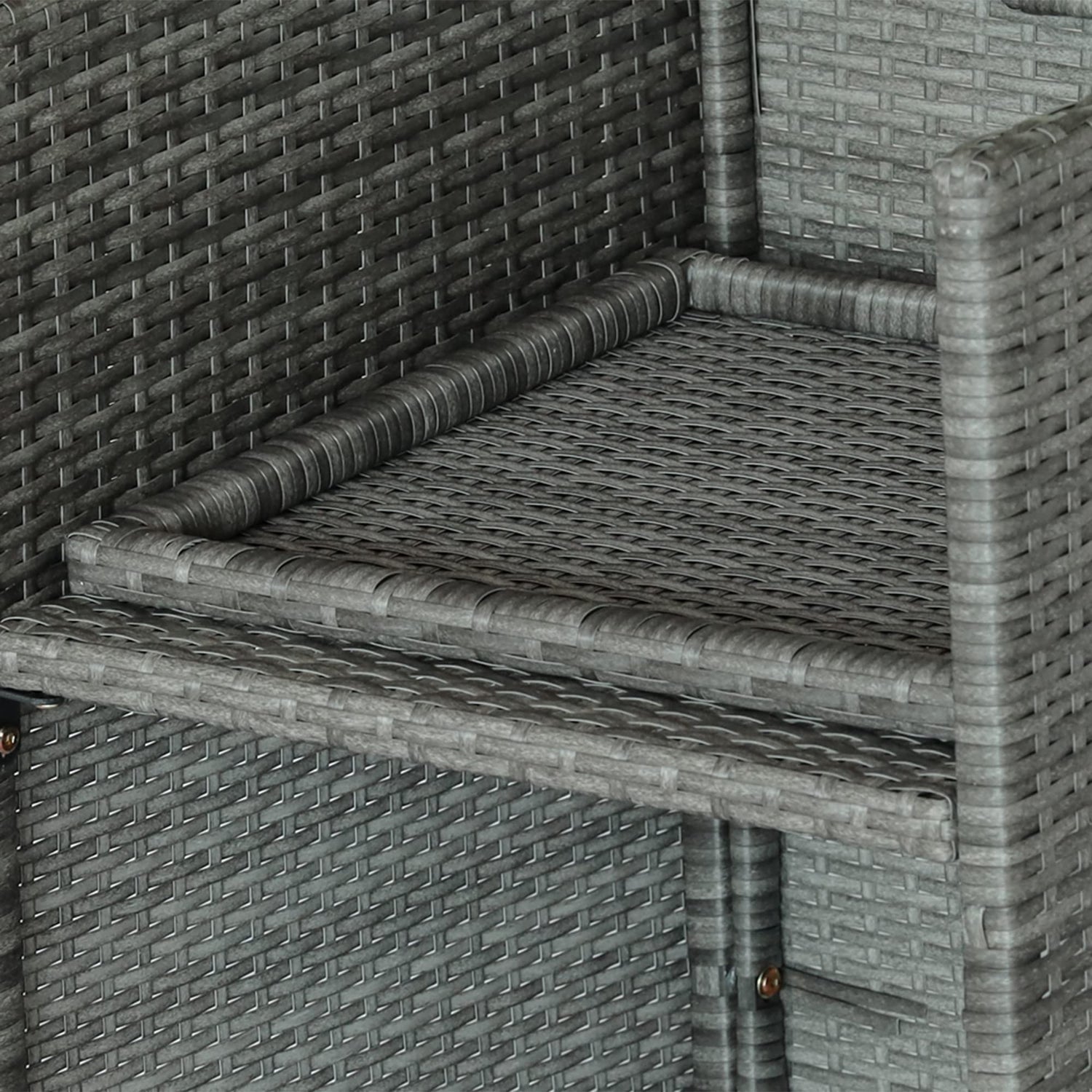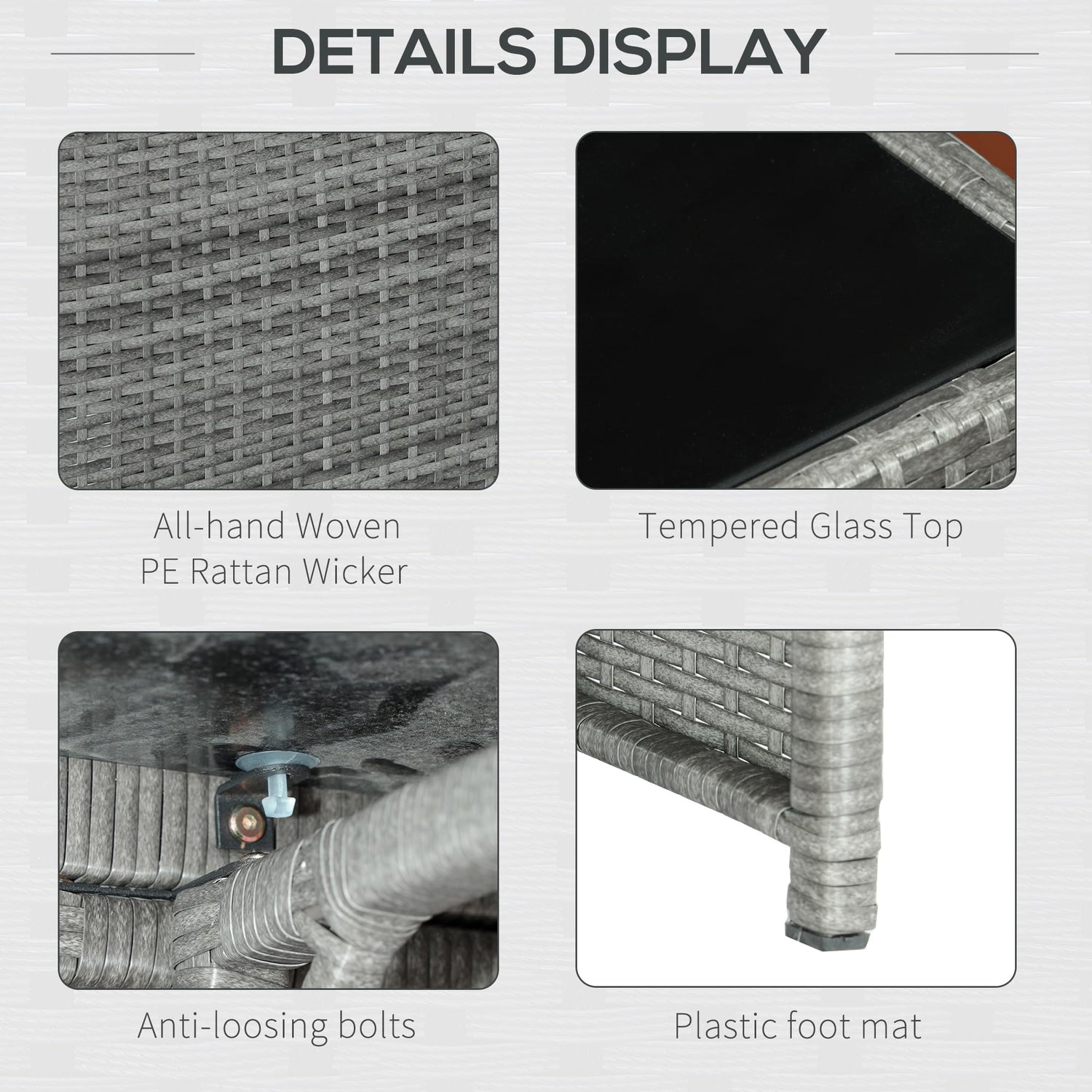 - Material: PE Wicker, Steel, Polyester Fabric, Tempered Glass