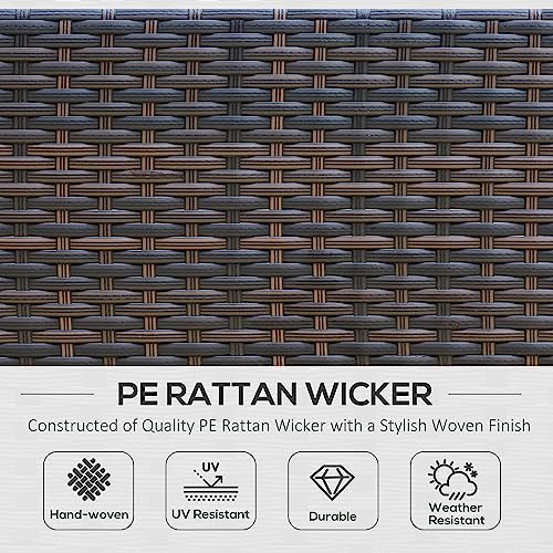 - Patio Ready: Our pool furniture set was handwoven with PE rattan. This gives the same tropical style as wicker with better resistance to UV and water. Tempered glass makes the table wipe-clean, and galvanized steel allows each piece a high weight capacity.