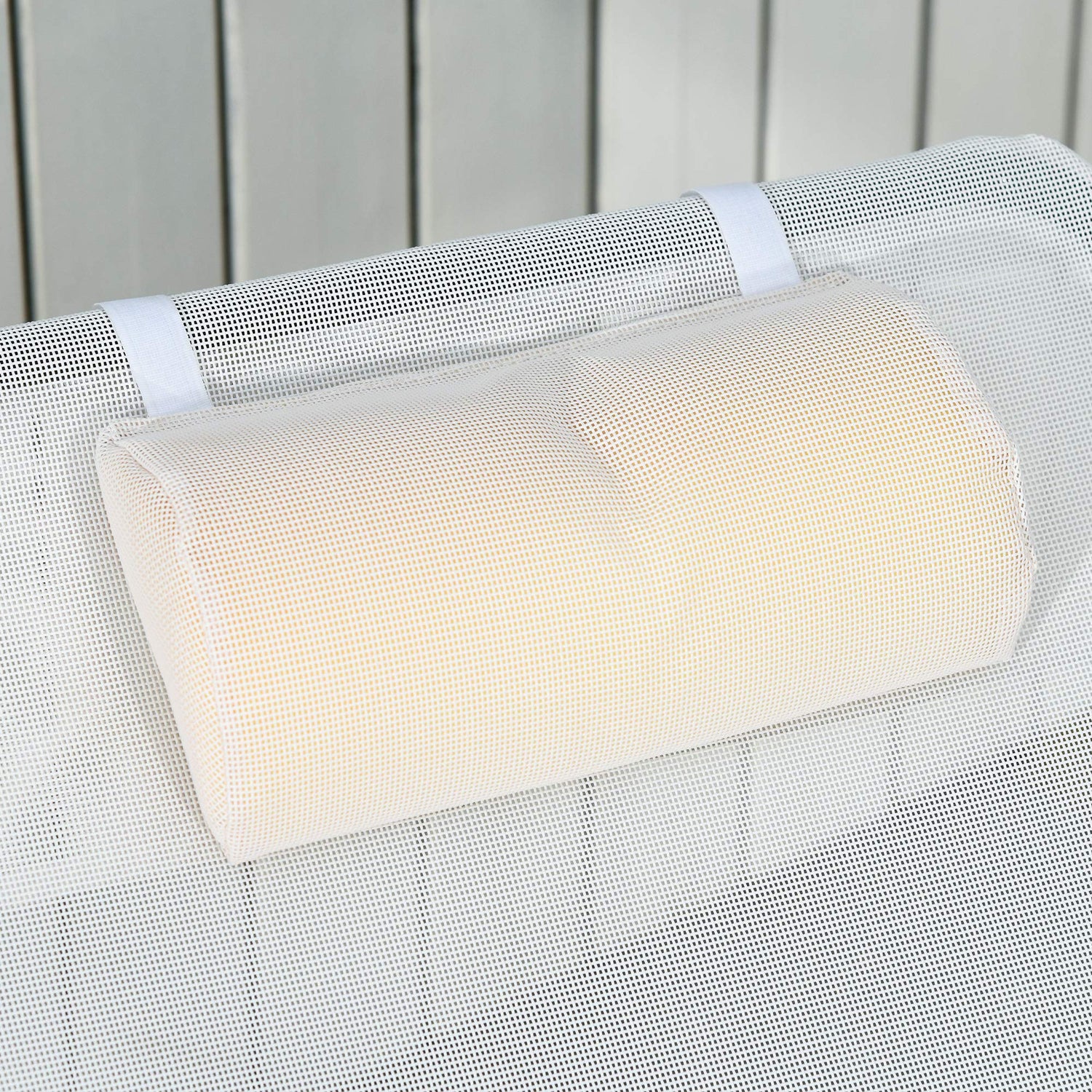 Outsunny Folding Chaise Lounge Chair, Pool Sun Tanning Chair, Outdoor Lounge Chair with Reclining Back, Breathable Mesh Seat, Headrest for Beach, Yard, Patio, Cream White
