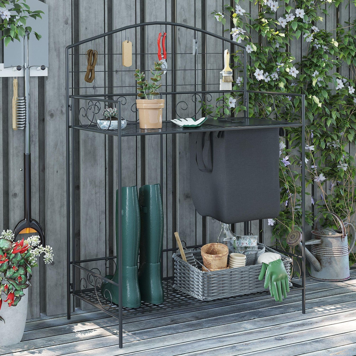 Details: This Potting Bench from Outsunny has flexible functionality to create the ultimate garden table experience. Lovingly crafted from metal, this potting bench will look great in any outdoor setting. The raised height of the work table saves your back and knees during those long hours spent working outside. Add this Table to utility table outdoor space and experience the charm and convenience for yourself!