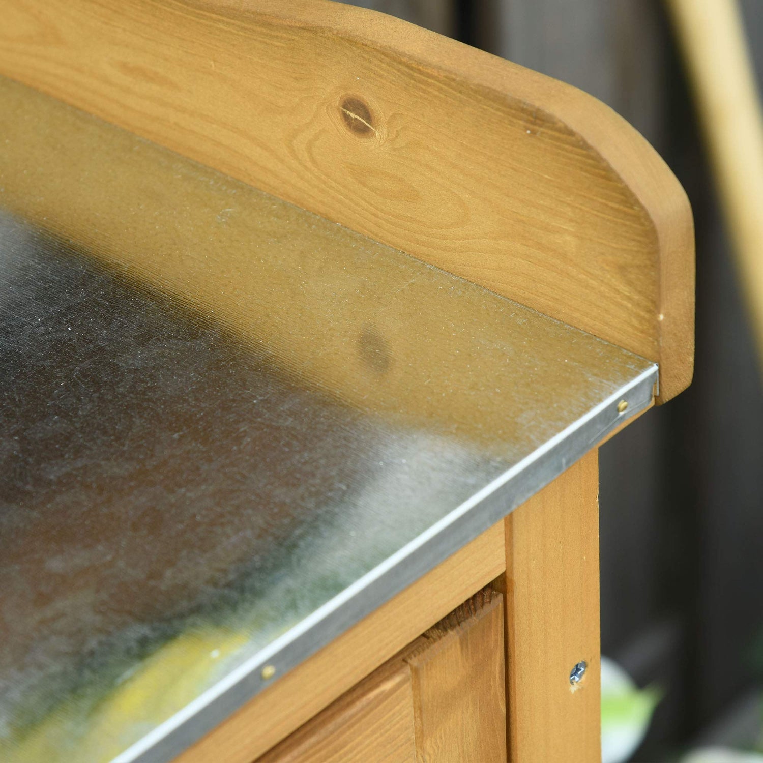 Outsunny Garden Potting Bench Table Wooden Workstation Shed with Tabletop, Hooks, 3-Tier Shelves Cabinet and 2 Magnetic Close Doors