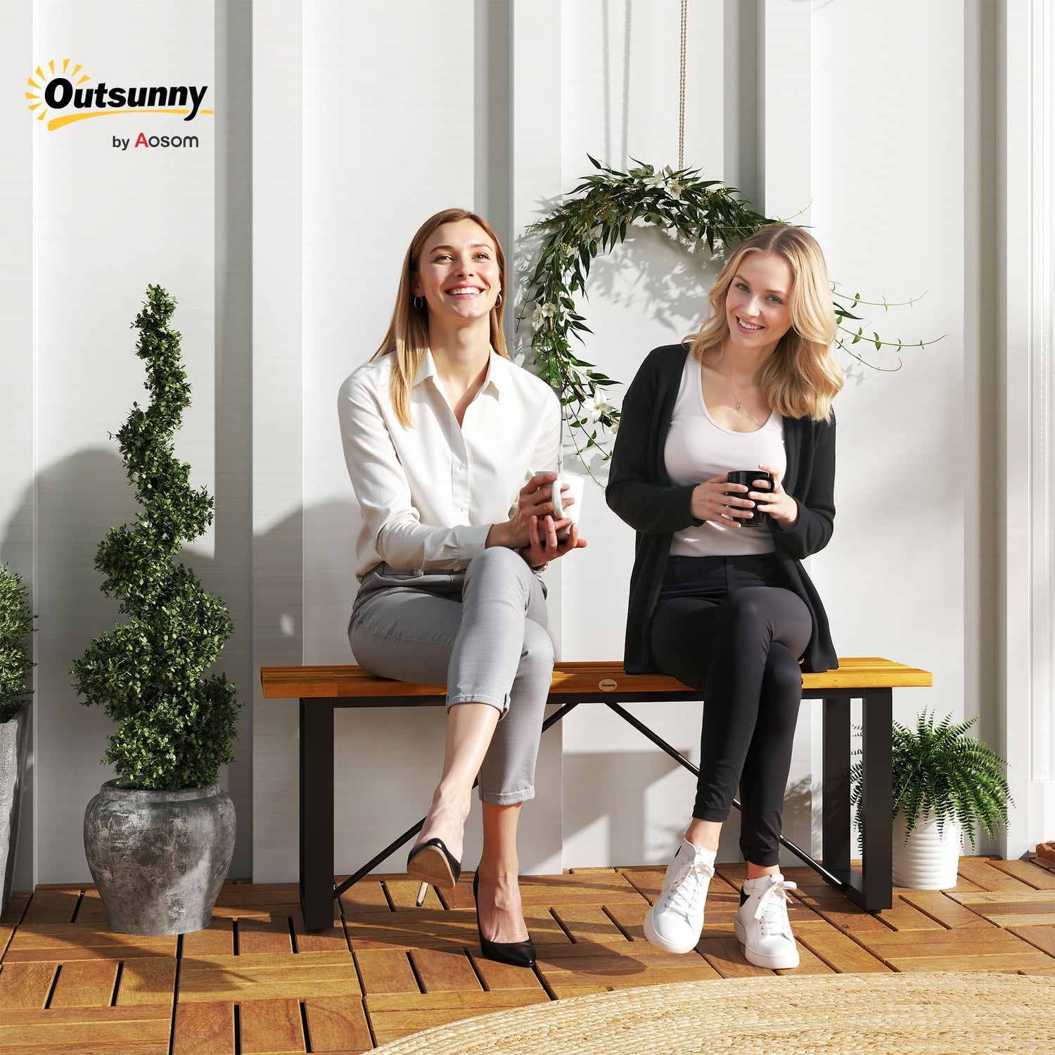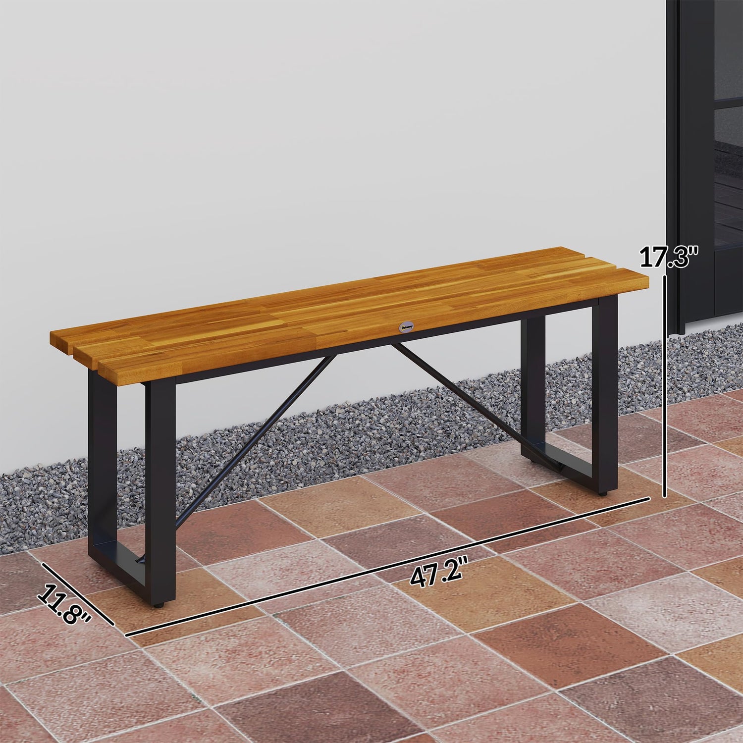 Outsunny Outdoor Bench, Acacia Wood Patio Garden Bench, 47" 2-Person Backless Patio Loveseat with Slatted Seat and Metal Frame, Weather/Corrosion Resistant for Outside, Front Porch, Park, Teak