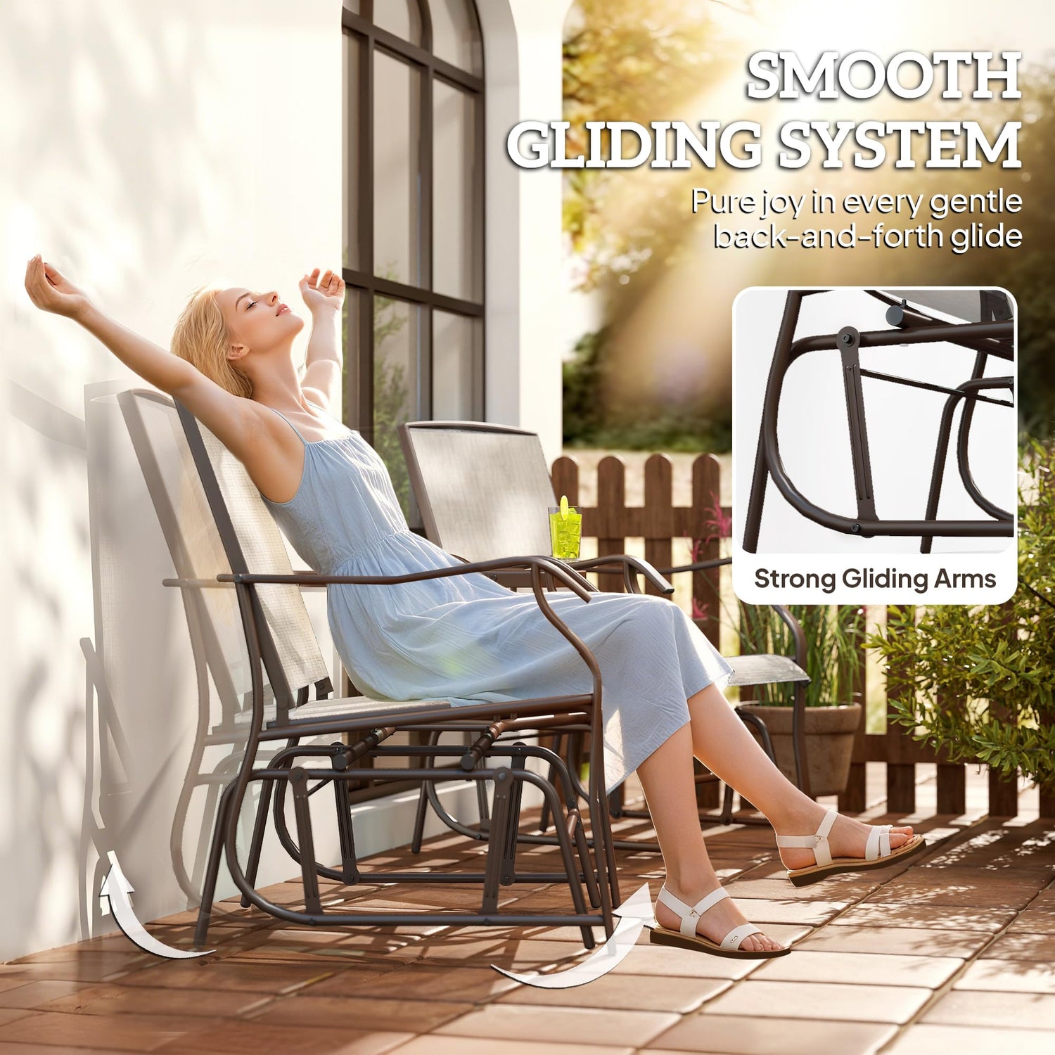 Outsunny Outdoor Glider Chairs with Coffee Table, Patio 2-Seat Rocking Chair Swing Loveseat with Breathable Sling for Backyard, Garden, and Porch, Light Brown