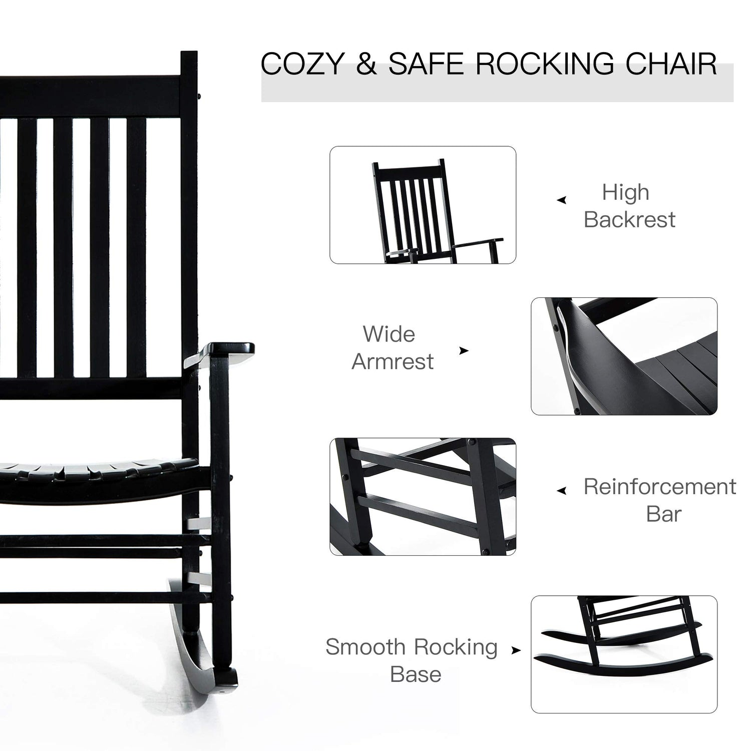 Outsunny Outdoor Rocking Chair, Wooden Rocking Patio Chairs with Rustic High Back, Slatted Seat and Backrest for Indoor, Backyard, Garden, Black