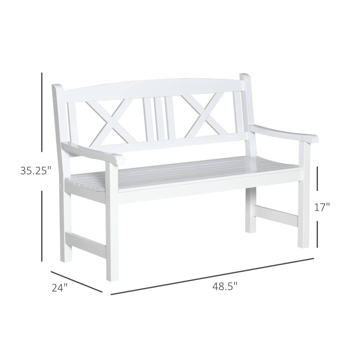 Outsunny White Rustic Wooden Garden Bench for Two with Backrest and Armrests