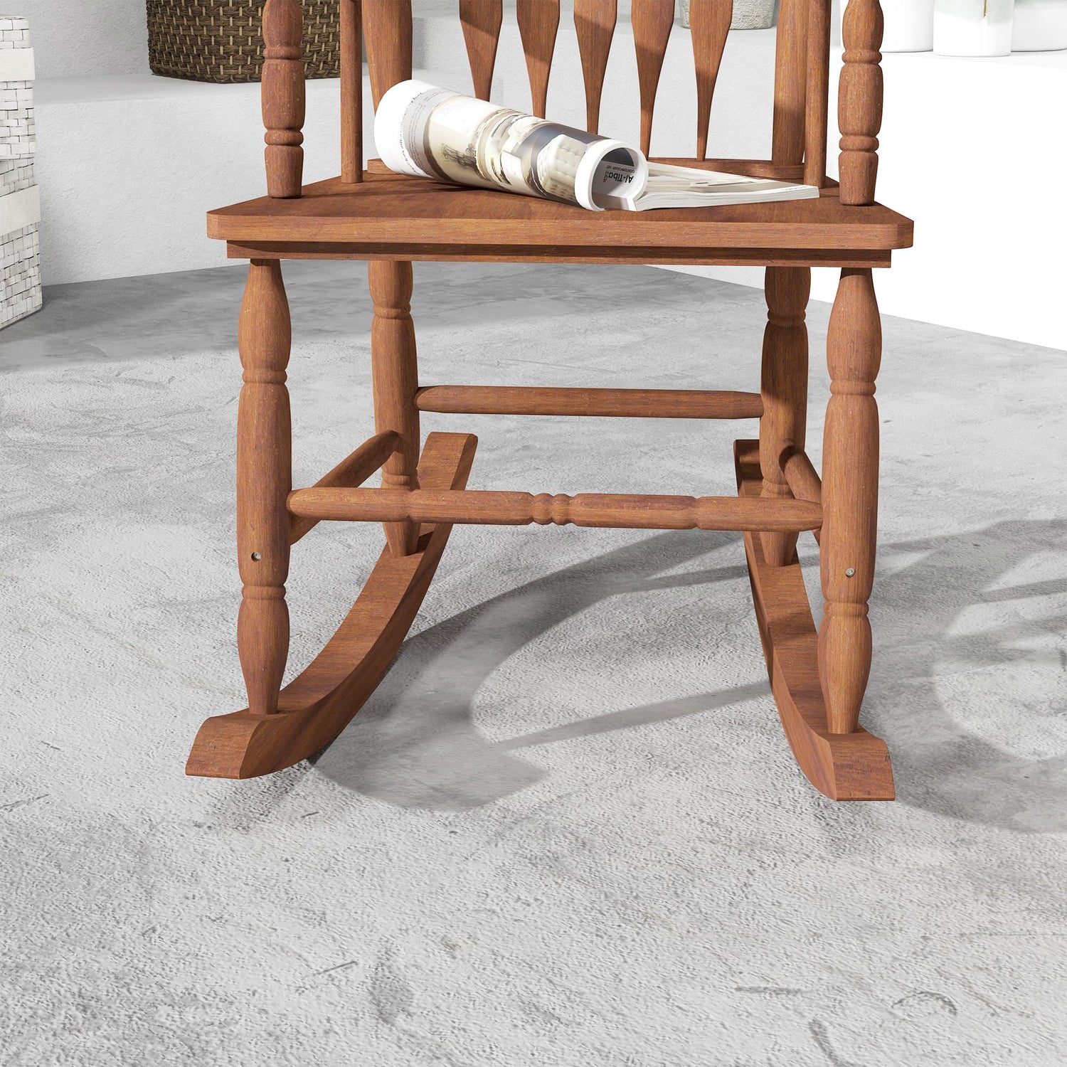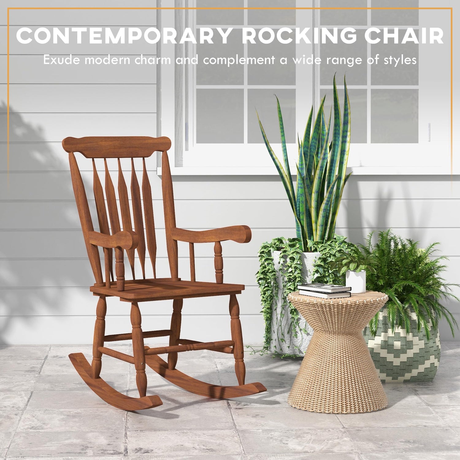 Outsunny Outdoor Wood Rocking Chair, 350 lbs. Porch Rocker with High Back for Garden, Patio, Balcony, Teak