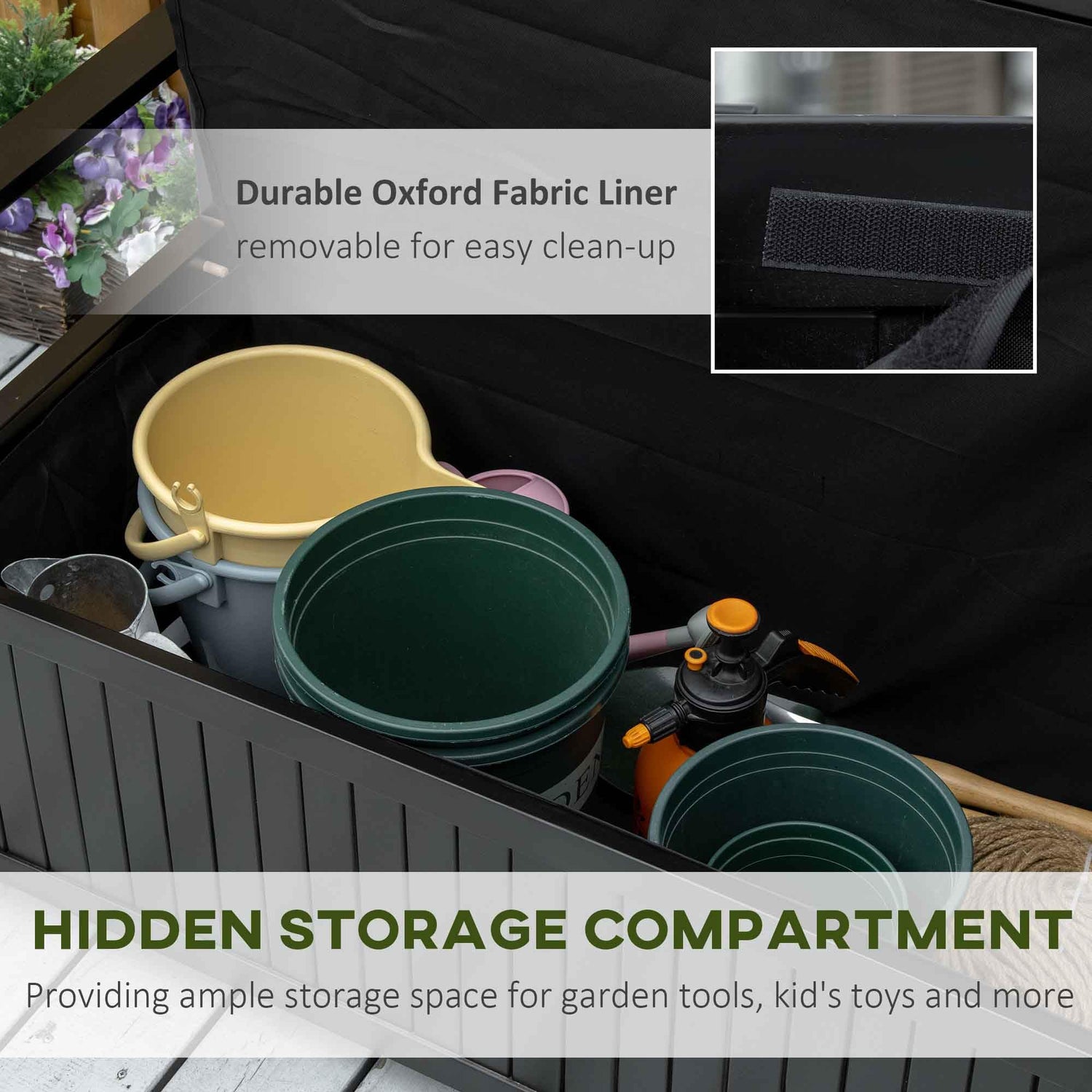 With a spacious 43-gallon cloth-lined chest nestled beneath the seat, you'll have ample room to store toys, pool accessories, and garden tools, ensuring your yard remains neat and your belongings protected from the elements.