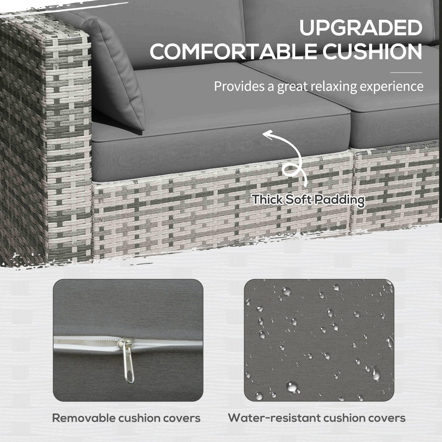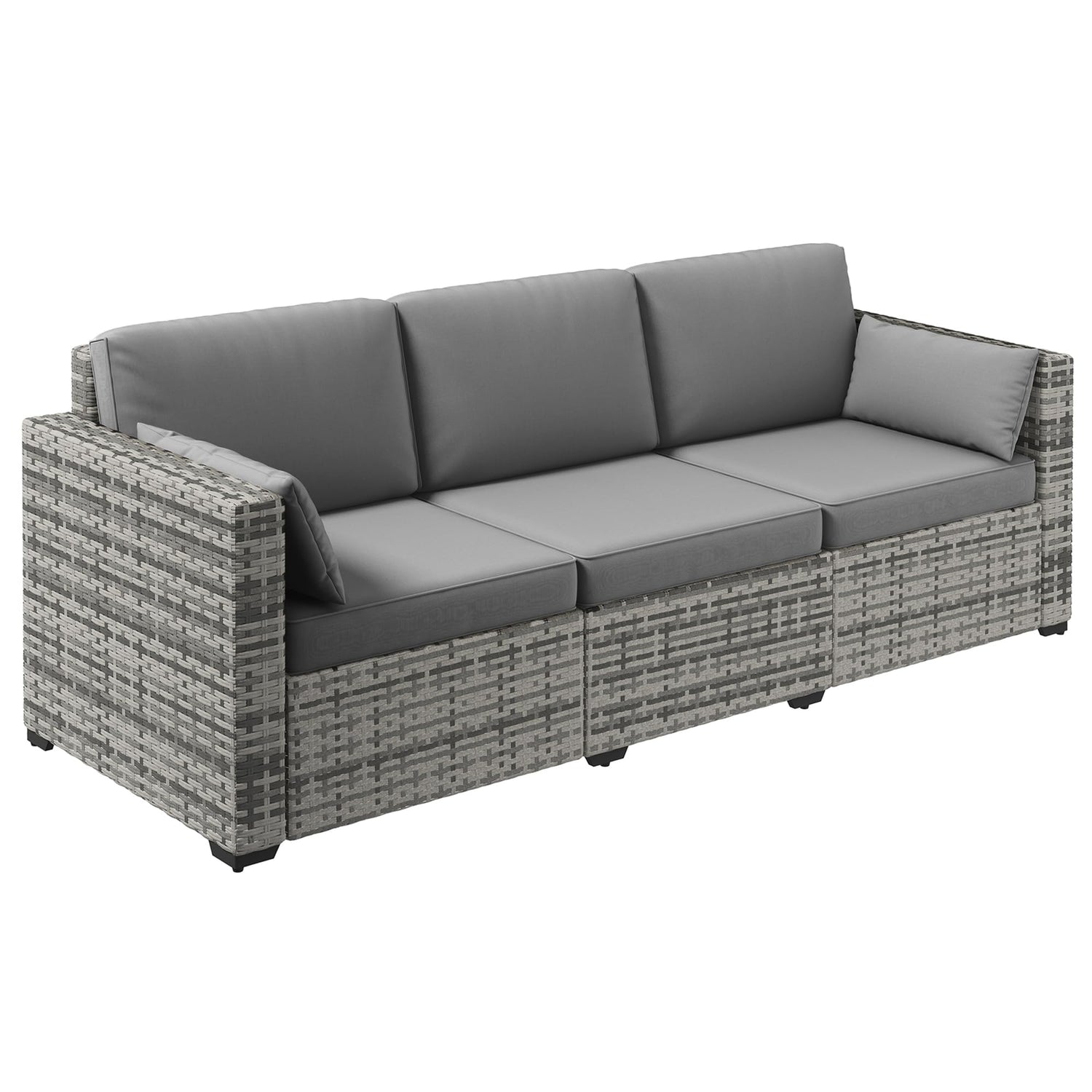 Outsunny Patio Couch PE Wicker Deep Seating Outdoor Sofa with Removable Cushions, 3 Seater Rattan Sofa, Outdoor Furniture for Balcony, Deck, Garden and Poolside, Gray