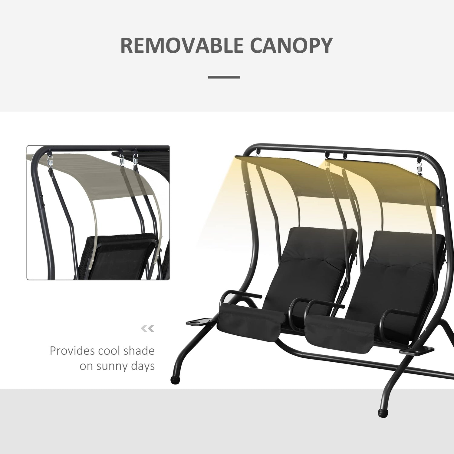 Outsunny Patio Swing Chair with 2 Separate Seats, Outdoor Swing Glider with Removable Canopy and Cup Holders, for Porch, Garden, Poolside, Backyard, Black