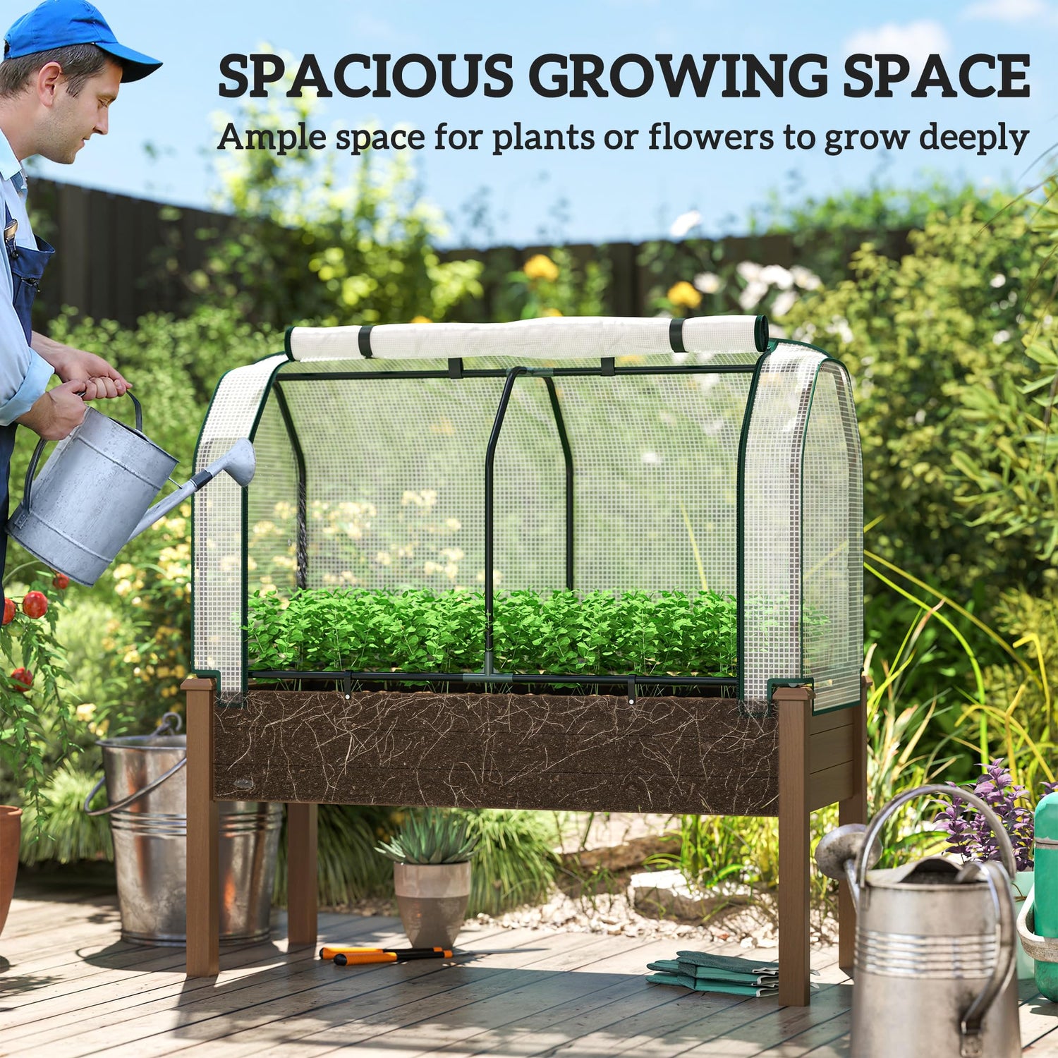 - Room to Grow: This raised planter box from Outsunny provides ample growing space with its solid supporting frame. Grow a wide variety of your favorite plants, vegetables, herbs and flowers.