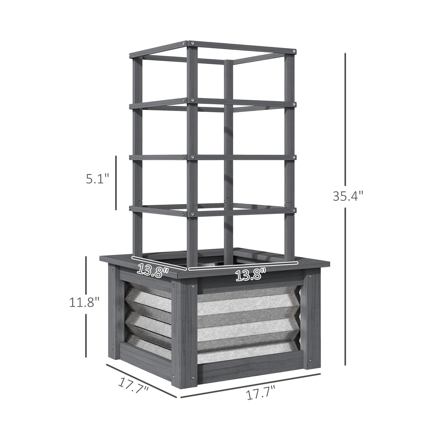 Outsunny Raised Garden Bed with Trellis, Wooden Planter Box with Galvanized Steel Sides, Raised Flower Bed for Climbing Plants, Flowers, Fruits and Vegetables, Gray