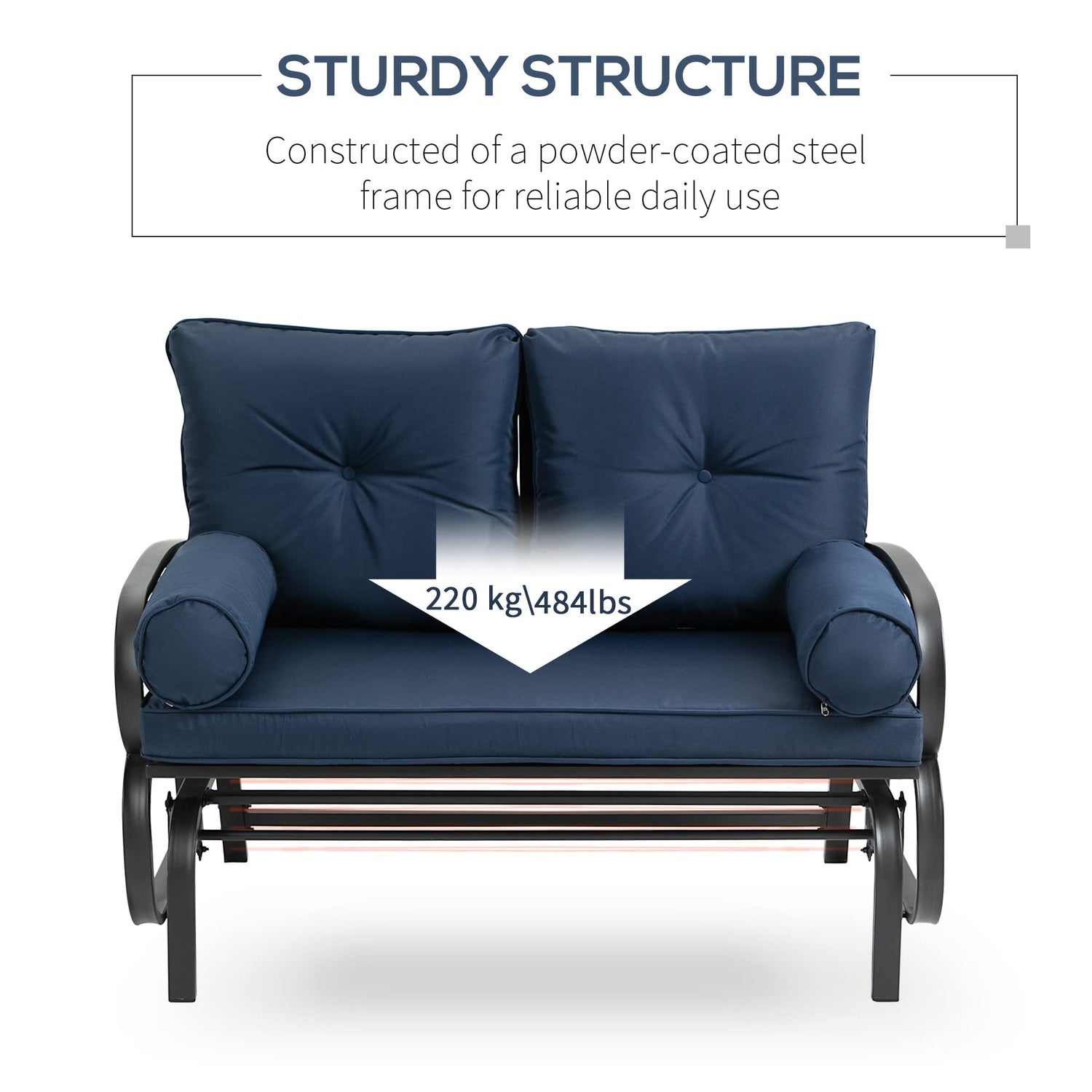 - Made with Outdoor in Mind: The frame of this gliding bench is made with heavy-duty load-bearing steel that provides a smooth rocking motion while still withstanding 484 lbs. of weight. The steel is powder-coated to protect it against water and weather, so your porch glider swing is ready for any outdoor environment.