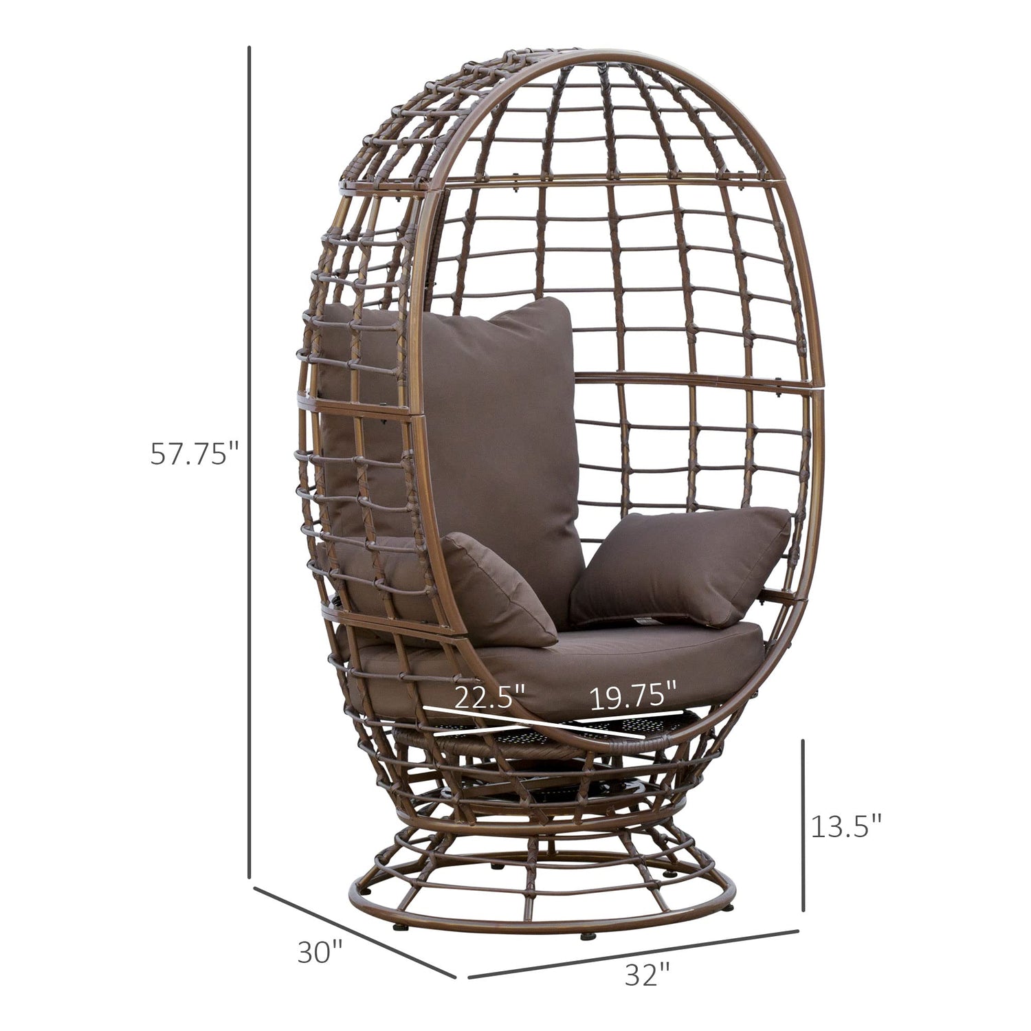 Outsunny Wicker Egg Chair, 360 Rotating Indoor Outdoor Boho Basket Seat with Cushion and Pillows for Backyard, Porch, Patio, Garden, Handwoven All-Weather PE Rattan, Steel Frame, Brown
