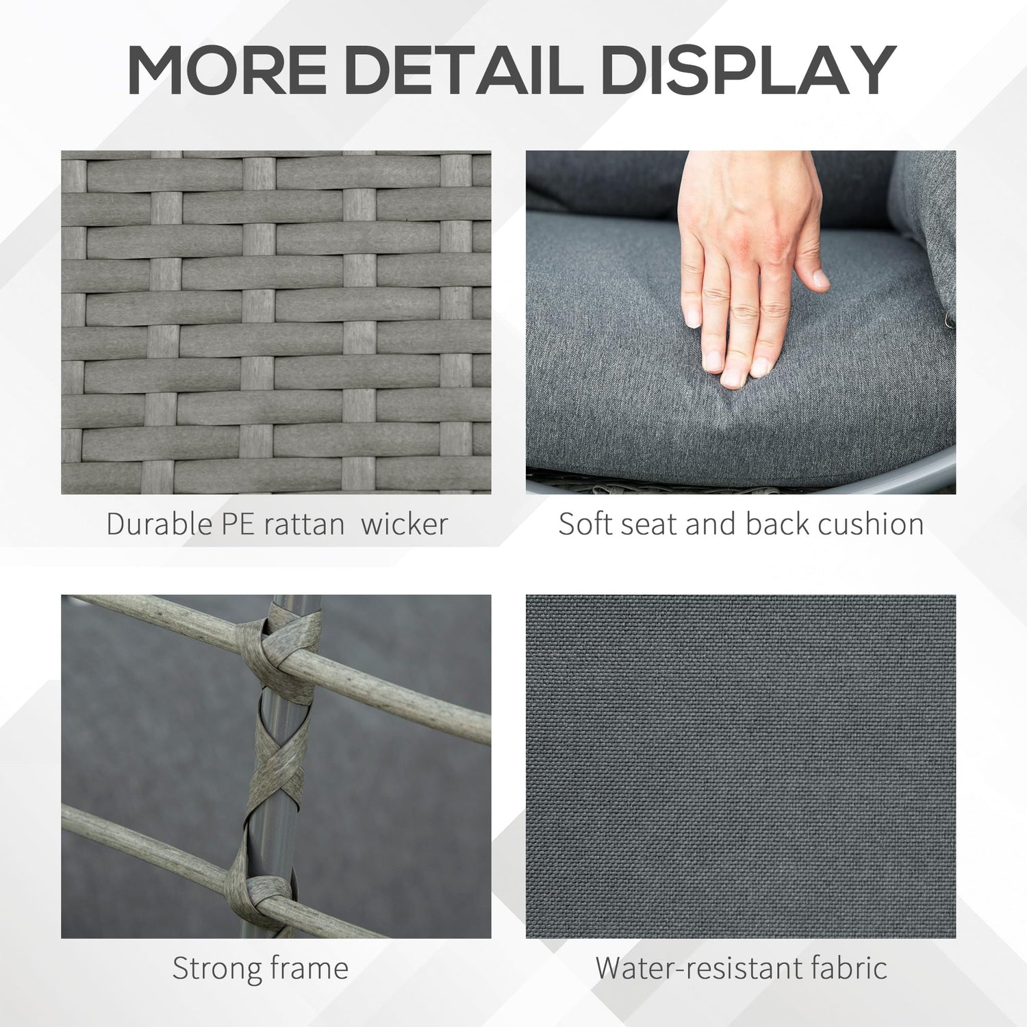 Outsunny Wicker Egg Chair, 360 Rotating Indoor Outdoor Boho Basket Seat with Cushion and Pillows for Backyard, Porch, Patio, Garden, Handwoven All-Weather PE Rattan, Steel Frame, Gray