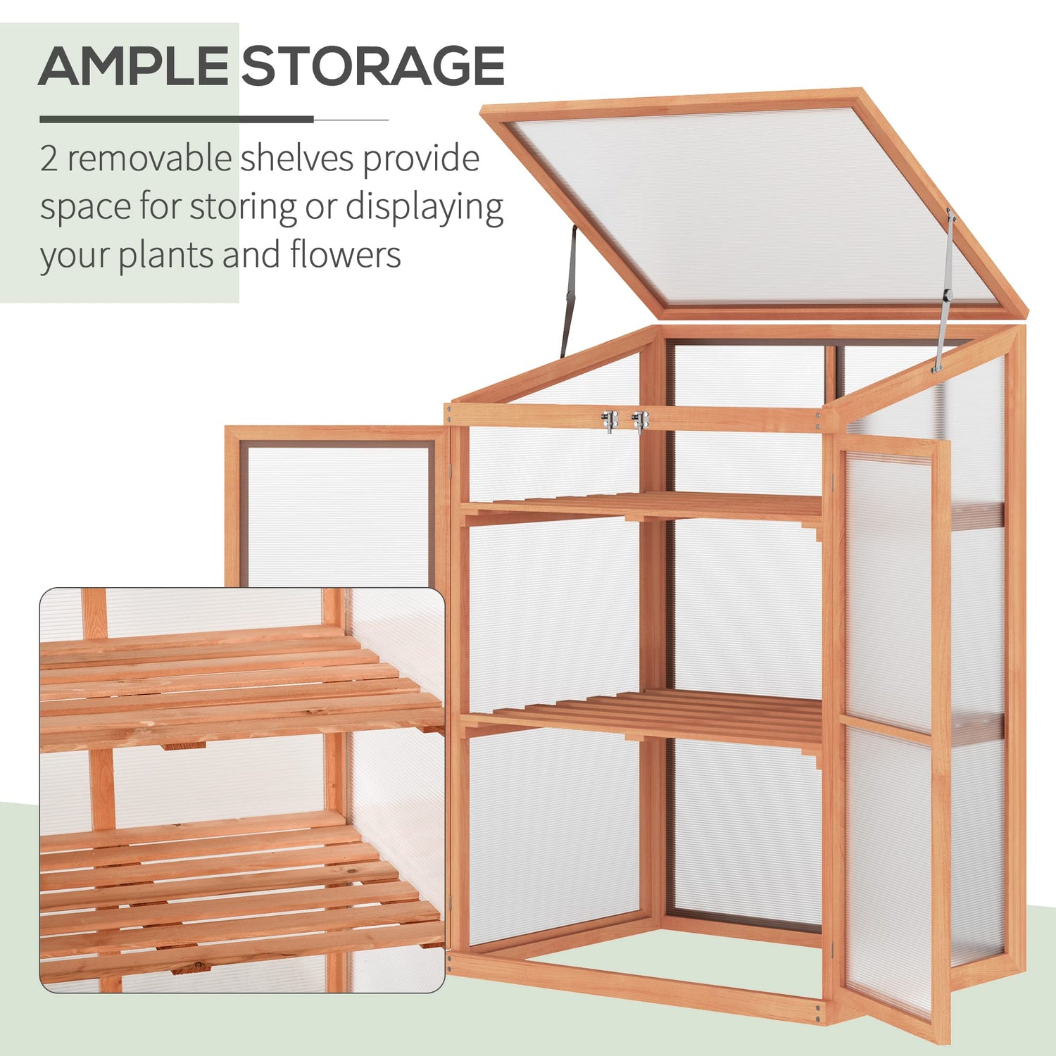 Outsunny Wooden Cold Frame Small Mini Greenhouse Cabinet for Outdoor and Indoor, 30" L x 24" W x 44" H, Natural