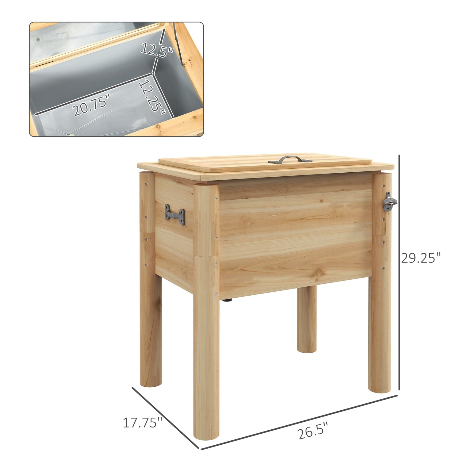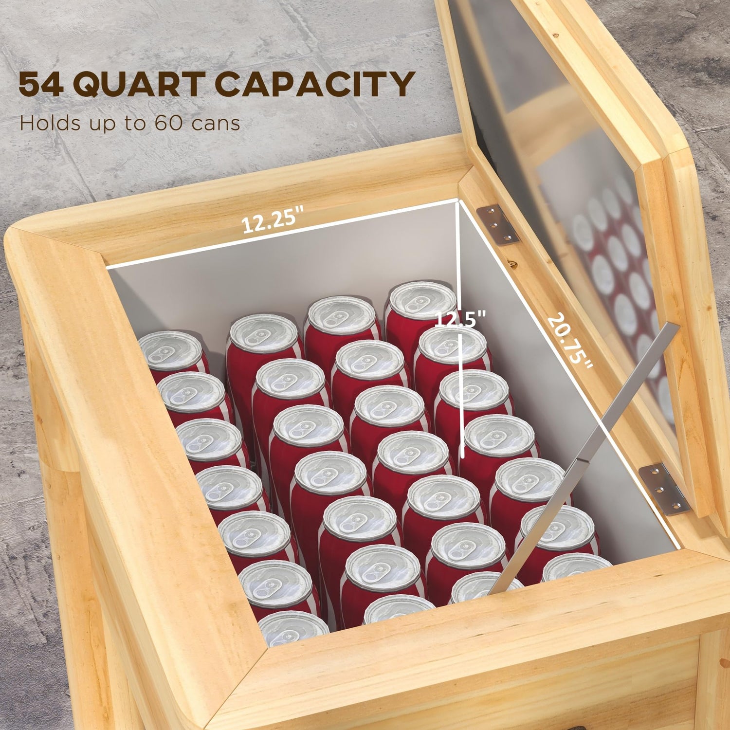 Outsunny Wooden Patio Cooler, 54Qt. Outdoor Beverage Cooler with Bottle Opener and 3 Handles for Backyard, Deck, Poolside Party, Natural