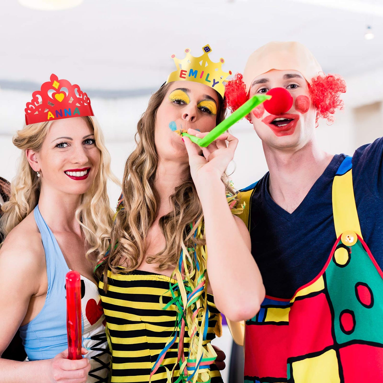 The paper crown tiaras are designed with 5 opening holes, so they are adjustable and easy to fit your head size; Of course, the adjustable design of the paper crowns make them possible to wear by adults.