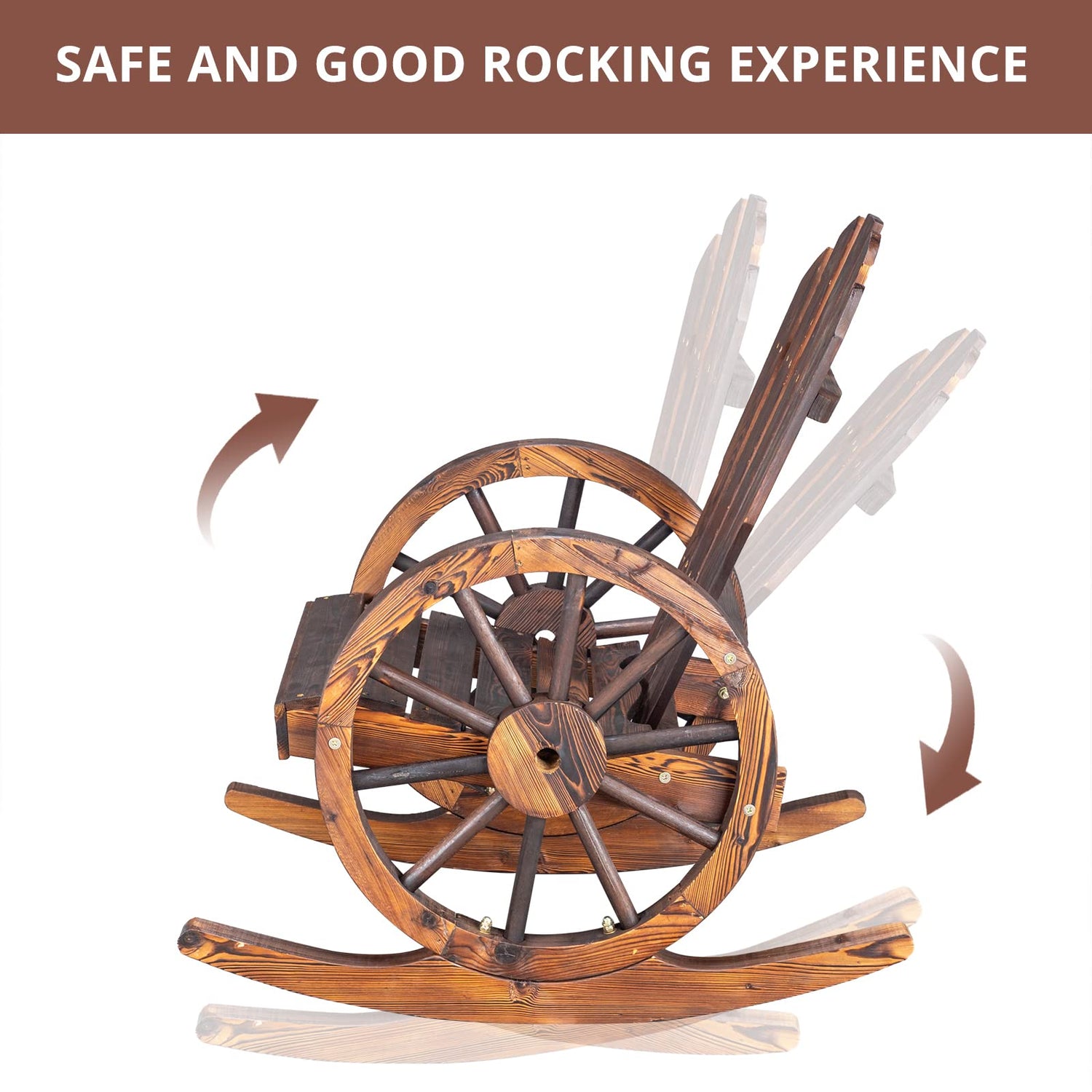 Outvita Adirondack Rocking Chair, Wood Wagon Rocker, Outdoor Wooden Carbonized Lounge Chairs with Wheel Armrest for Garden Patio Country Yard Porch, Fir