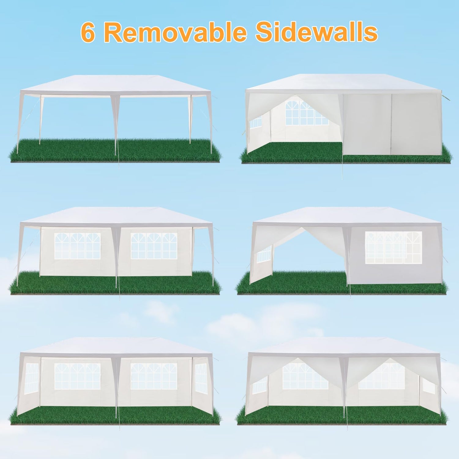 Outvita Outdoor Gazebo White Canopy with sidewalls, Wedding Party Tent with UV Blocking for Parties Sun Rain Shelter (10x20ft)