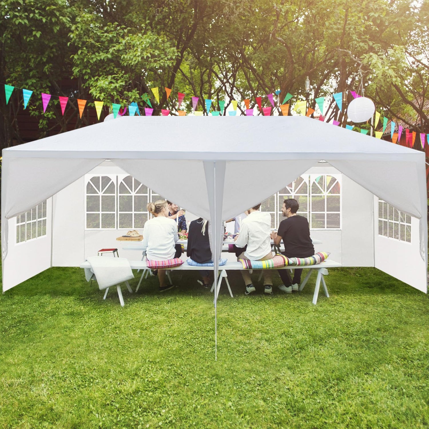 - 【WIDE USAGE】This party tent is perfect for commercial or recreational use like party, wedding, graduation, flea market, small business, outdoor events, patio leisure, backyard, camping, picnics, birthday party, sporting events, arts and crafts tables and much more