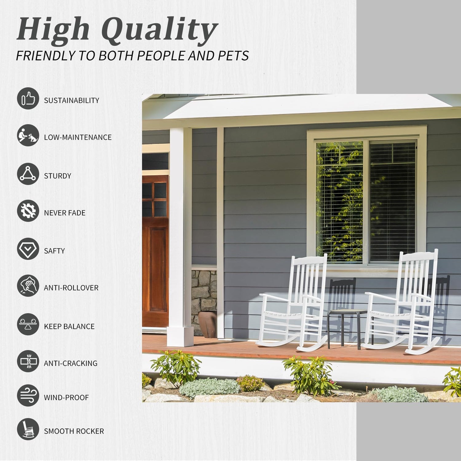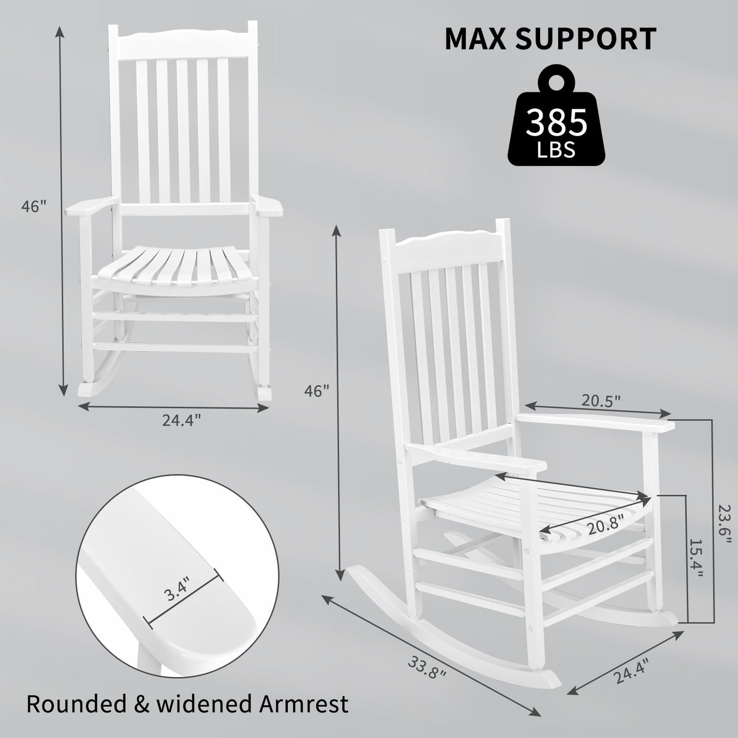 - 🪑【Selected Solid Wood】This outdoor rocker is made of 100% solid wood and handled with Polyurethane paint to provide an extra layer of ultra-effective protection against corrosion. Stable frame is strong enough to hold up to 385 pounds, provding a solid seating area year after year.
