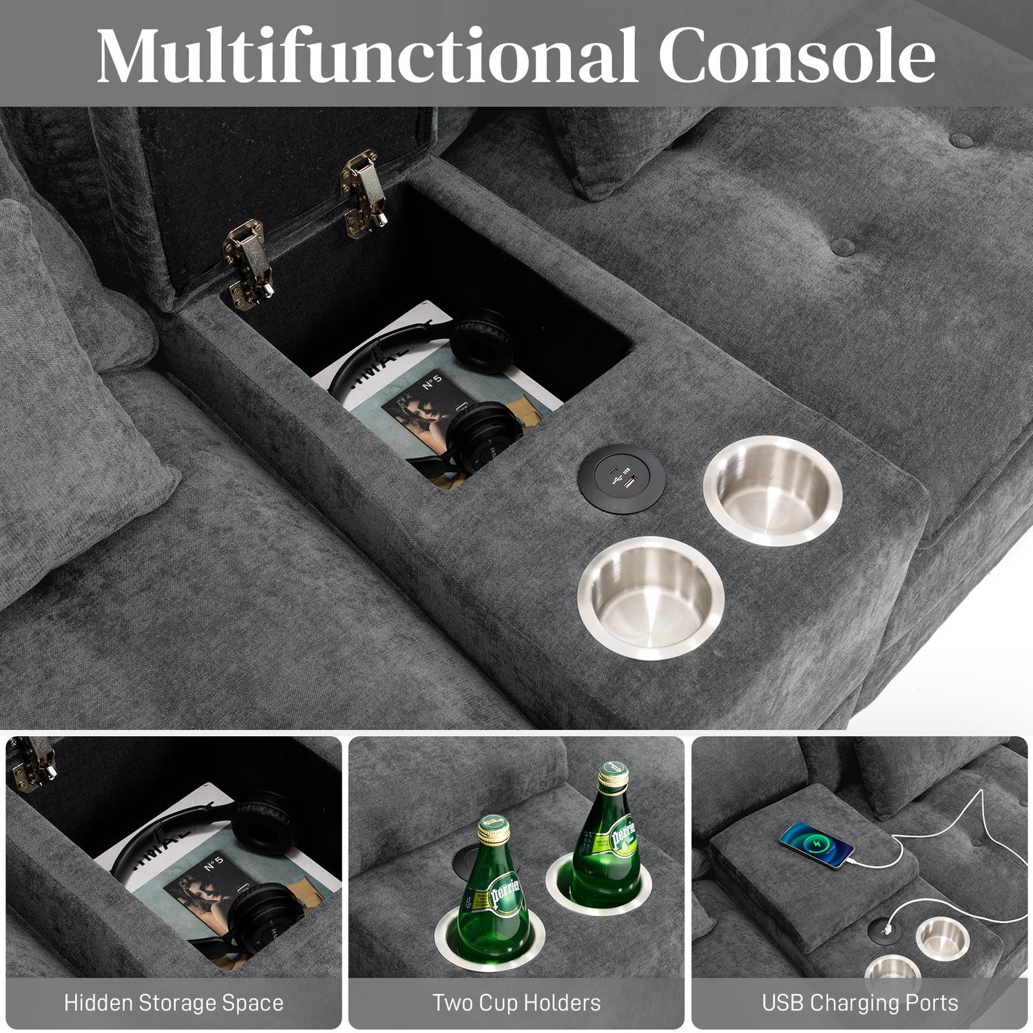- 【Stylish & Multifunctional U Shaped Sofa】This U shaped sectional sofa features dual cup holders and built-in USB ports, making it the ideal living room furniture for modern homes. Hidden storage space keeps your essentials neatly organized—perfect for grey couches for living room where relaxation meets functionality in every detail.