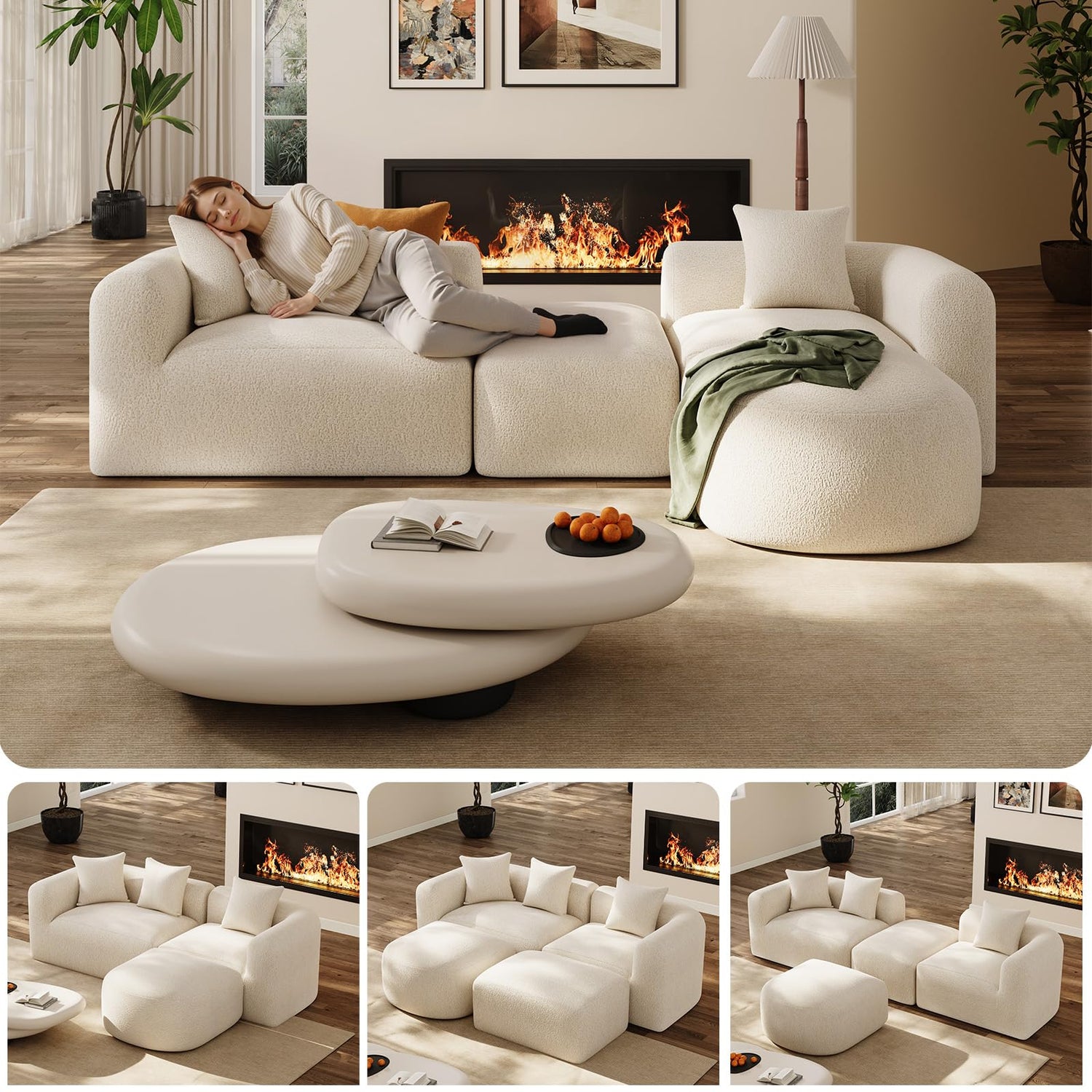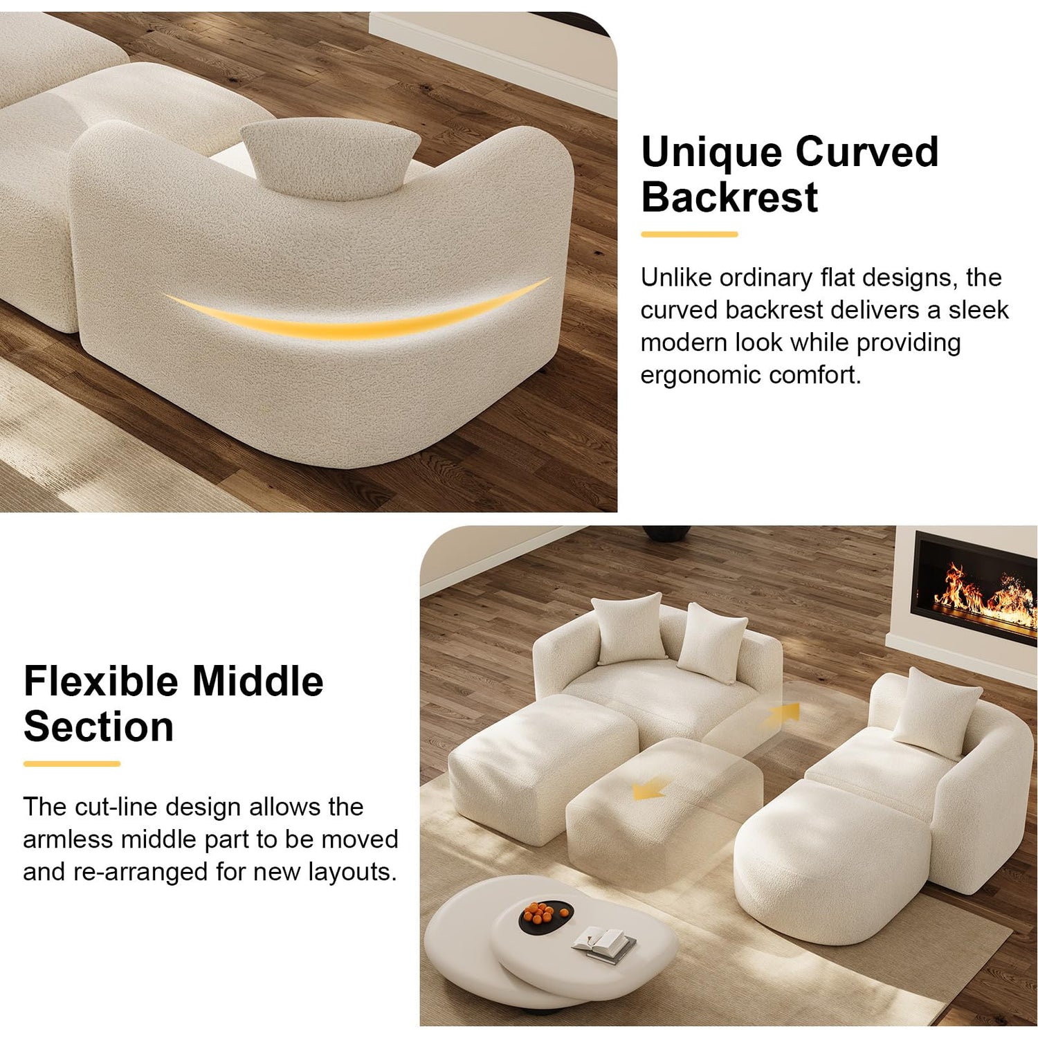 - 【Spacious Family-Friendly Sofa】With its extra-wide 99.6-inch seating, curved modular sofa comfortably accommodates families and guests. The modular ottoman and center segment let you design a personalizedcurved couches for living room, sofa set, or living room sets furniture that suits your space and lifestyle.