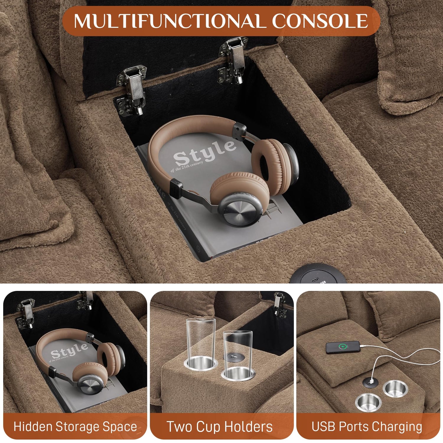 OUYESSIR U Shaped Cloud Sectional Couch, 124" Fluffy Modular Sofa Set with Double Chaise Lounge Central Console & USB Port, Comfy Chenille Big Sectional Couches for Living Room, Brown