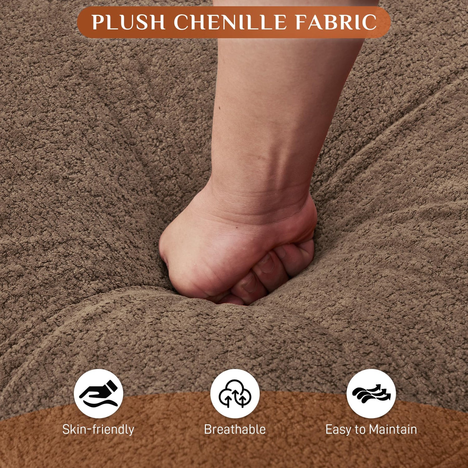 - 【Soft & Practical Chenille Fabric】Wrapped in soft, skin-friendly chenille fabric, this cloud sofa sectional resists wear and wrinkles. The 11.7" padded armrests double as napping pillows and can be removed to create more legroom, adding flexibility to your sofa set for living room. Its plush look and touch make it a true fluffy chenille couch choice for everyday lounging.