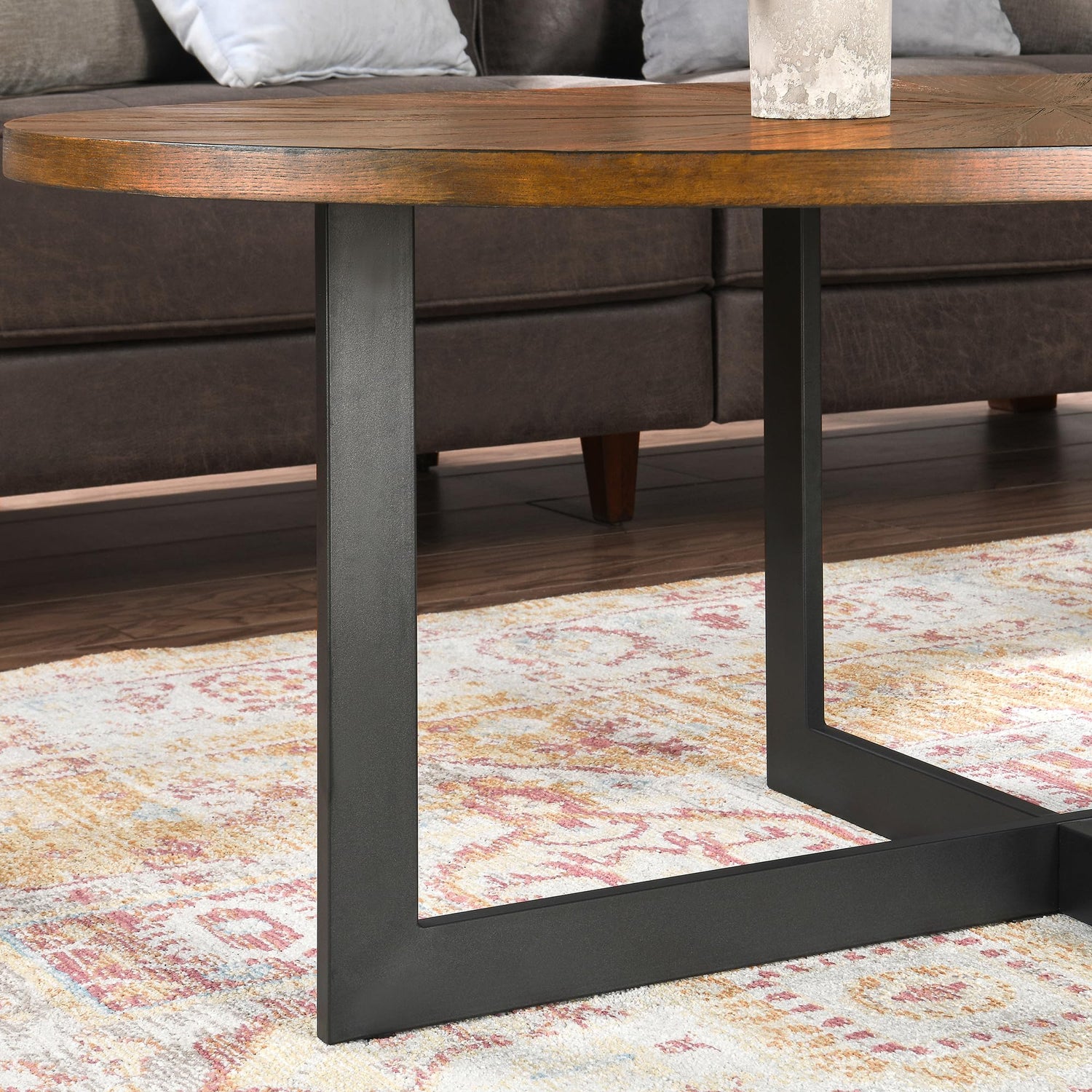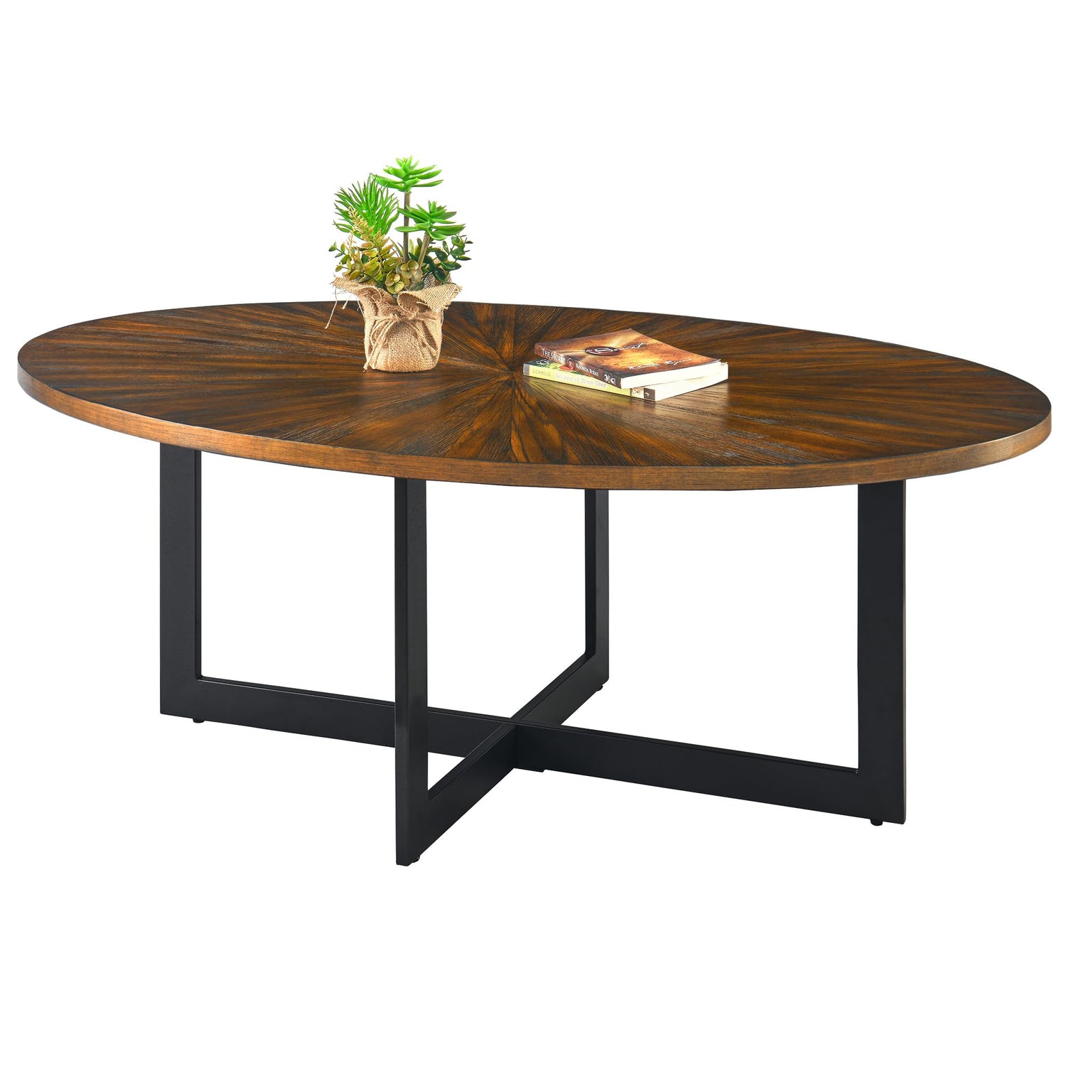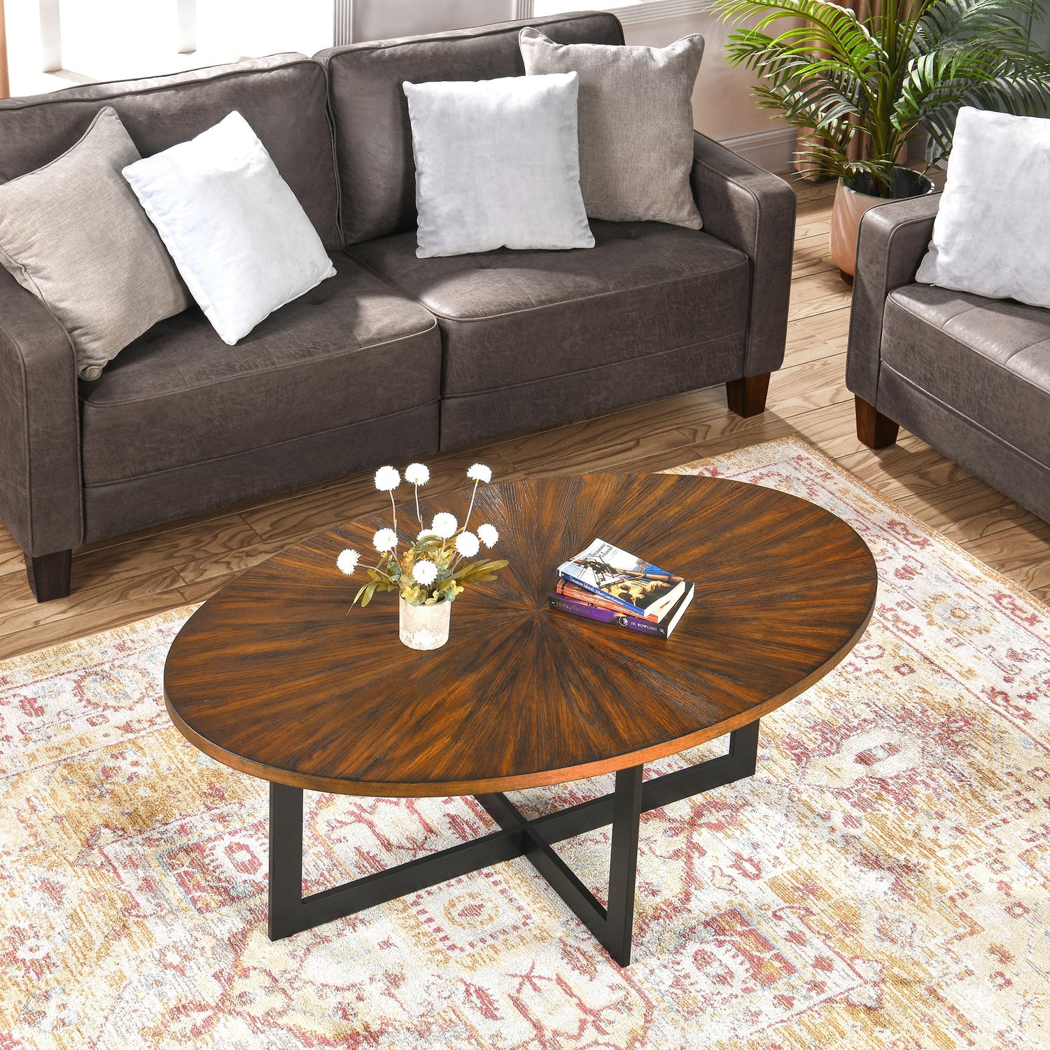 Oval Coffee Table for Living Room, Solid Wood Coffee Tables and Sturdy Metal Legs, Mid Century Modern Coffee Table, Designed Home Furniture, Center Large Circle Coffee Table