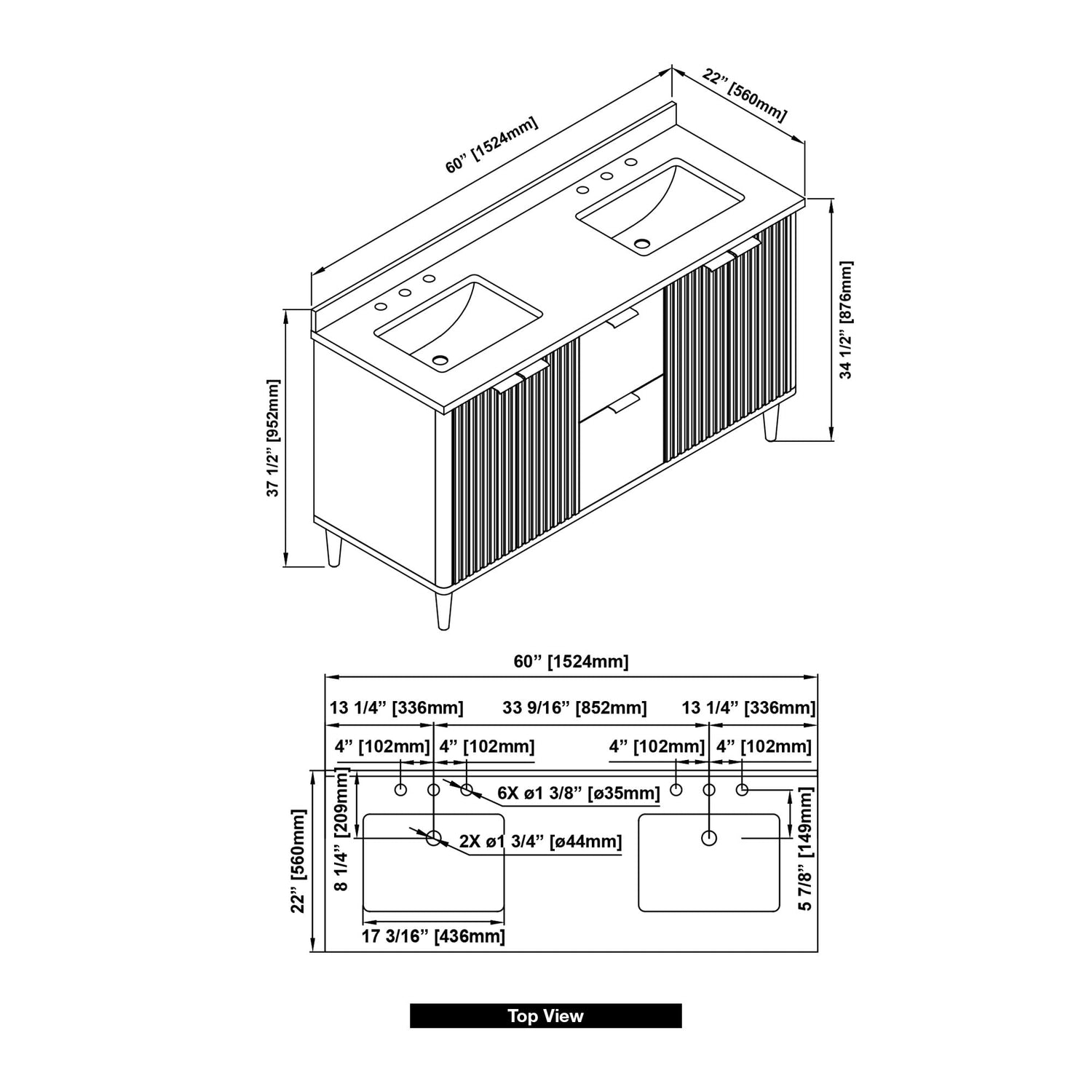 - Features two 20.28-in x 15.16-in rectangular undermount sinks with overflow, as well as pre-drilled holes for two 8-in widespread faucets – faucets not included
