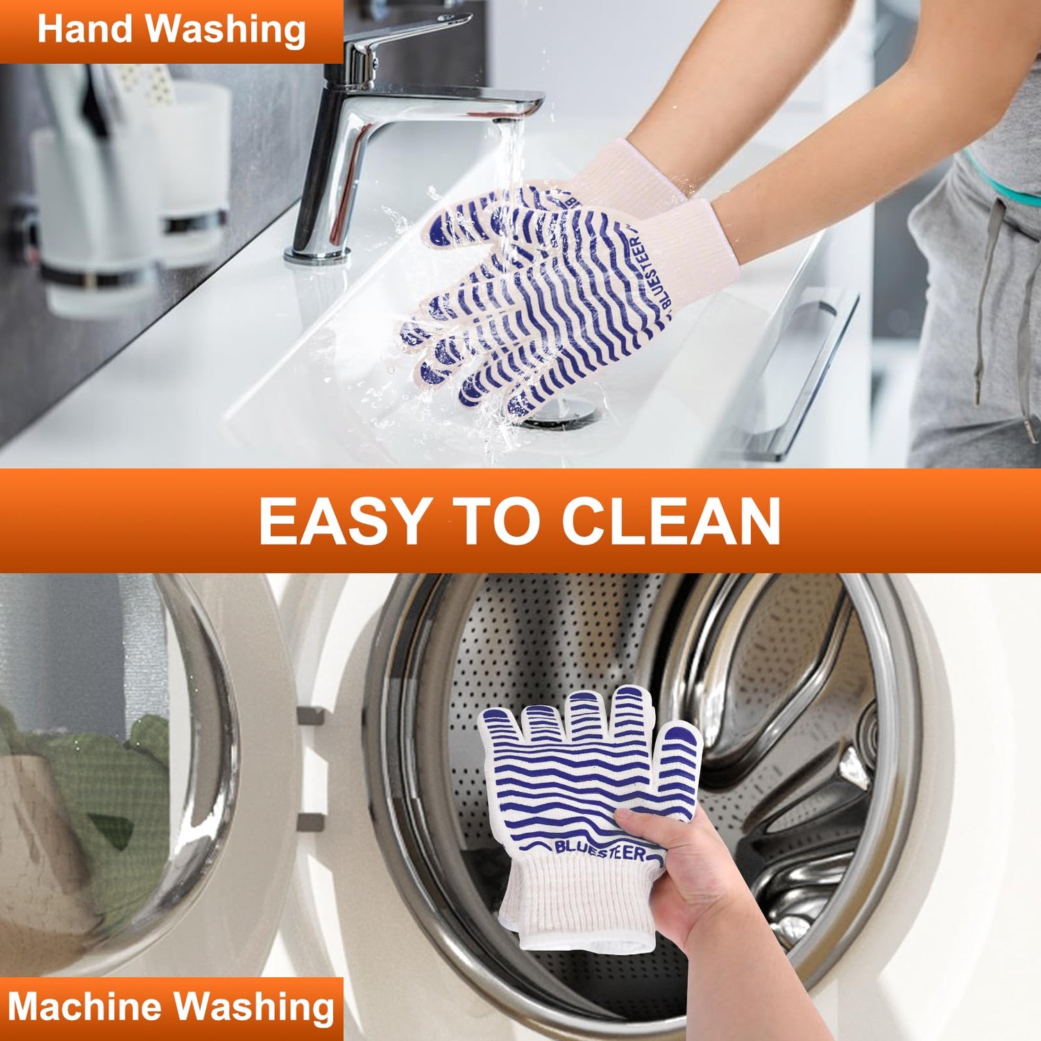 Oven Gloves, 932°F Heat Resistant Gloves, Oven Mitts with Fingers, Grill Gloves Heat Proof for Men Women, BBQ Gloves Silicone Grip, BLUESTEER Fireproof Gloves for Kitchen Cooking, Grilling, Baking