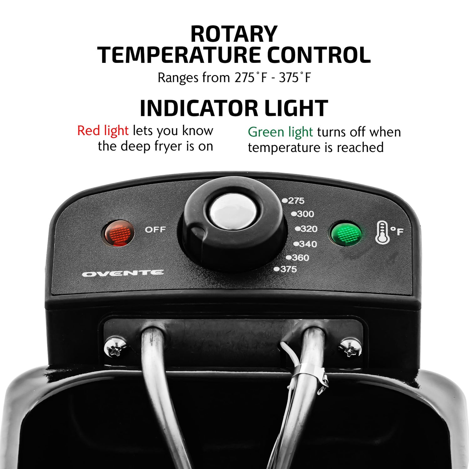 - ADJUSTABLE TEMPERATURE CONTROL – With a temperature range of 275°F to 375°F, you can fry a wide variety of comfort foods such as French fries, chicken tenders, chimichangas, corn dogs, poppers, spring rolls, fritters, doughnuts, beignets, funnel cakes, even homemade potato chips. The possibilities are endless.