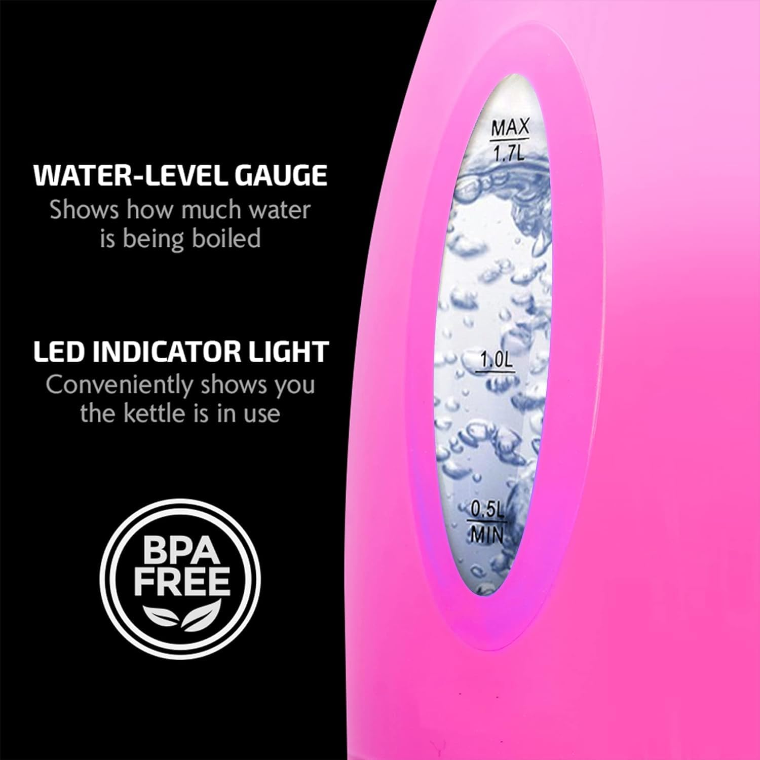 OVENTE Electric Kettle, Hot Water, Heater 1.7 Liter - BPA Free Fast Boiling Cordless Water Warmer - Auto Shut Off Instant Water Boiler for Coffee & Tea Pot - Pink KP72P