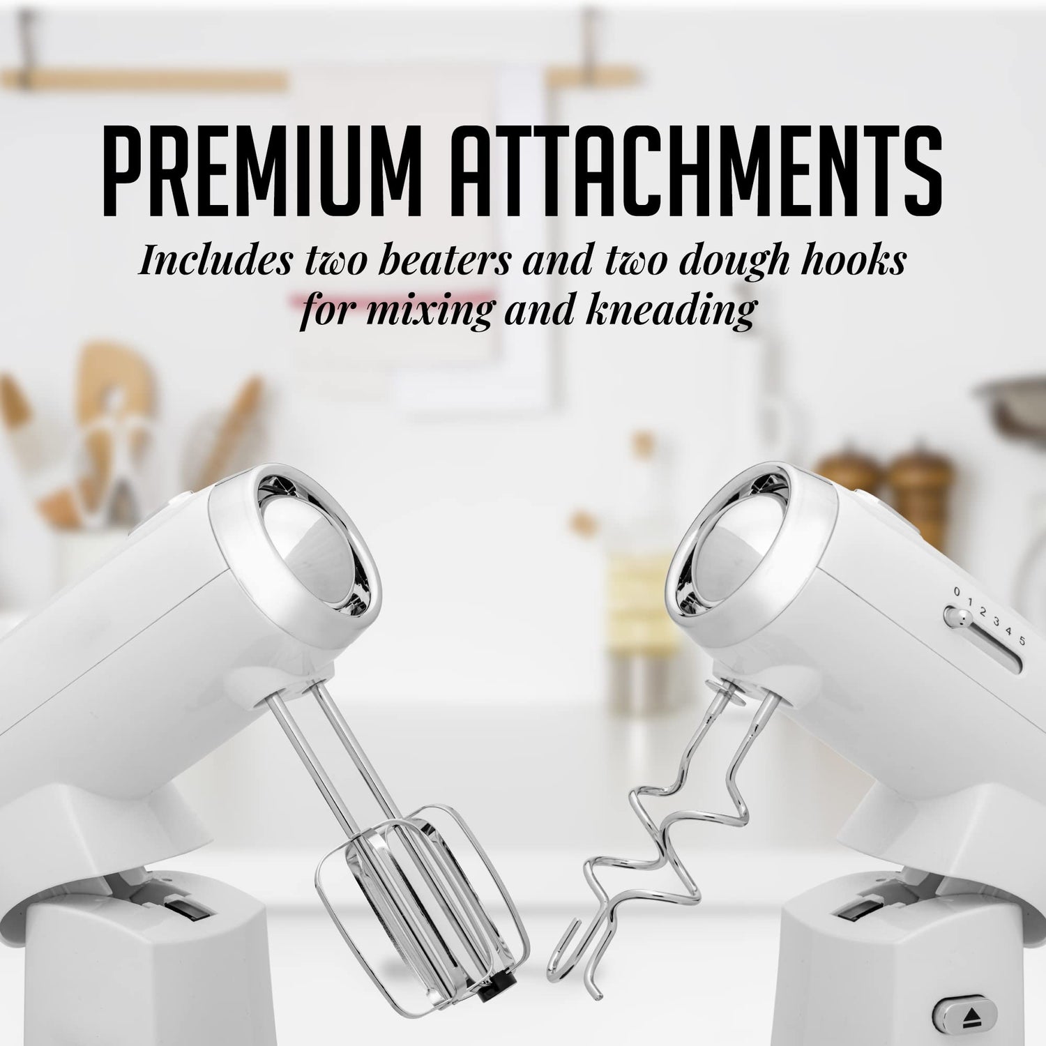 - MIX IT WITH EASE – This mixer, which has a powerful 250W motor, may be used to stir, knead, beat, whip, or mix culinary ingredients. With its five mixing speeds, you can quickly whip batter and cream cold butter for your cakes!