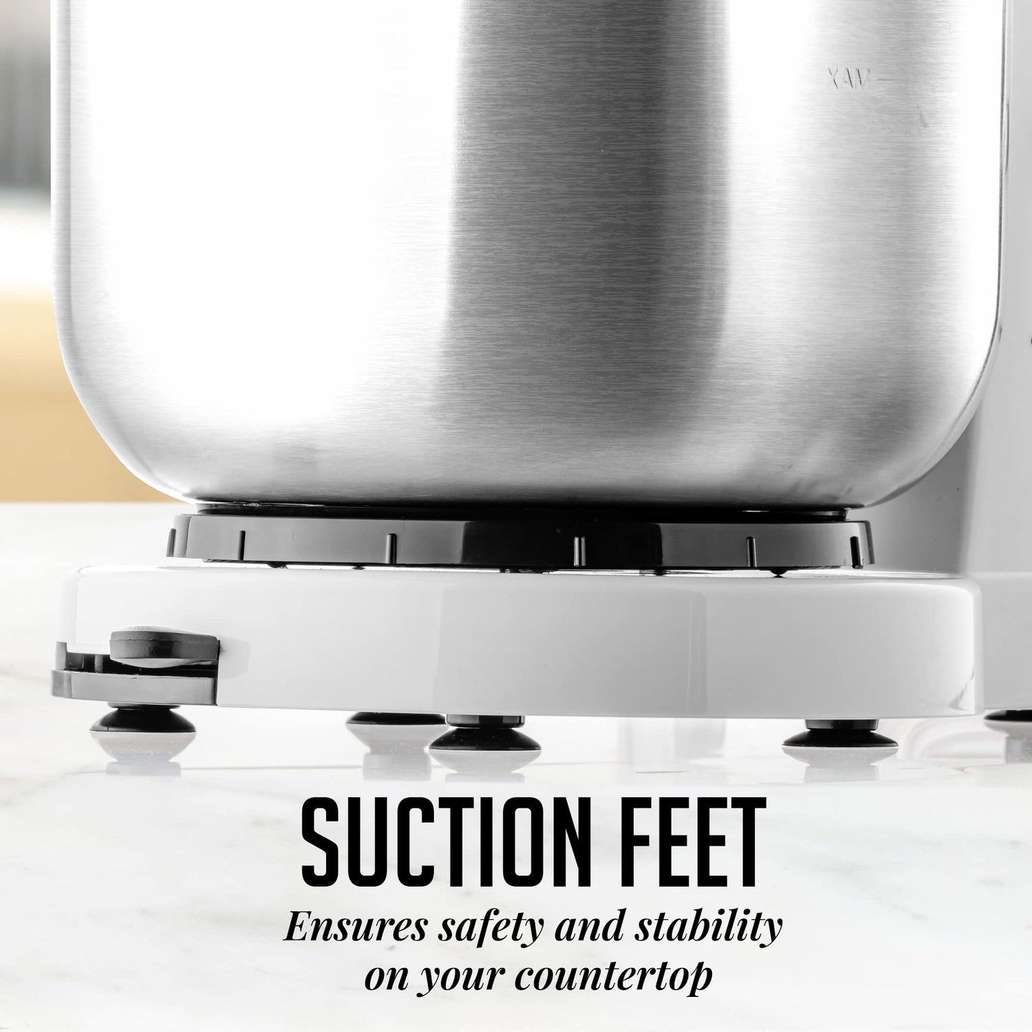 This household stand mixer will fit anywhere in your kitchen, on the countertop, and in cupboards thanks to its small size and ease of storage. Its timeless vintage design will offer your visitors an aesthetically pleasing ambiance that will undoubtedly turn heads.