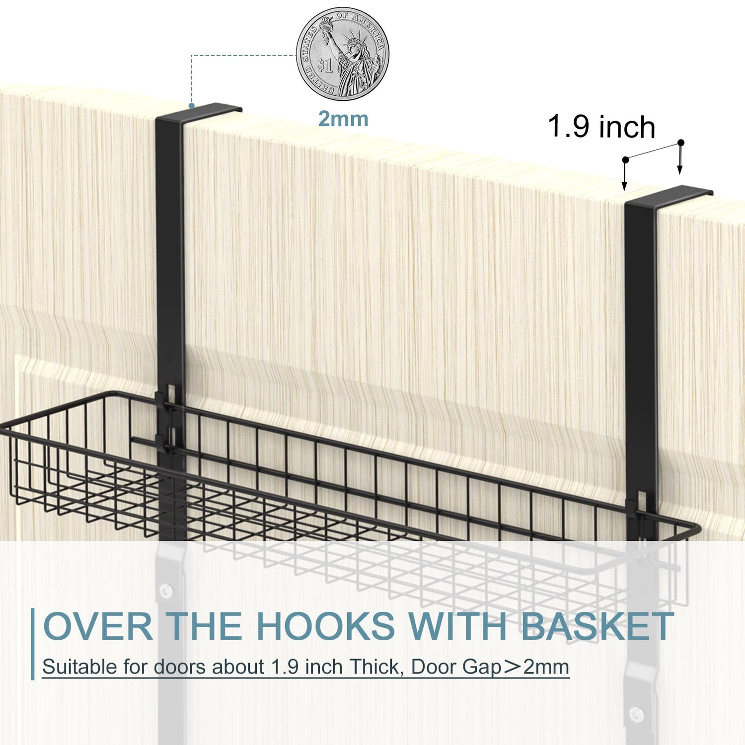 - 【3 Tier Over the Door Organizer】With black metal material, simple design ceates a suitable over the door storage organizer for matching your different home decor. The structure is simple. You not need drilling on the wall to avoid damaging. Only if you place the hooks over the door. Please note: The over the door shelf is suitable for doors about 1.9 inches thick. Door gap (>2mm) will be helpful to close the door successfully after you hang the door rack.