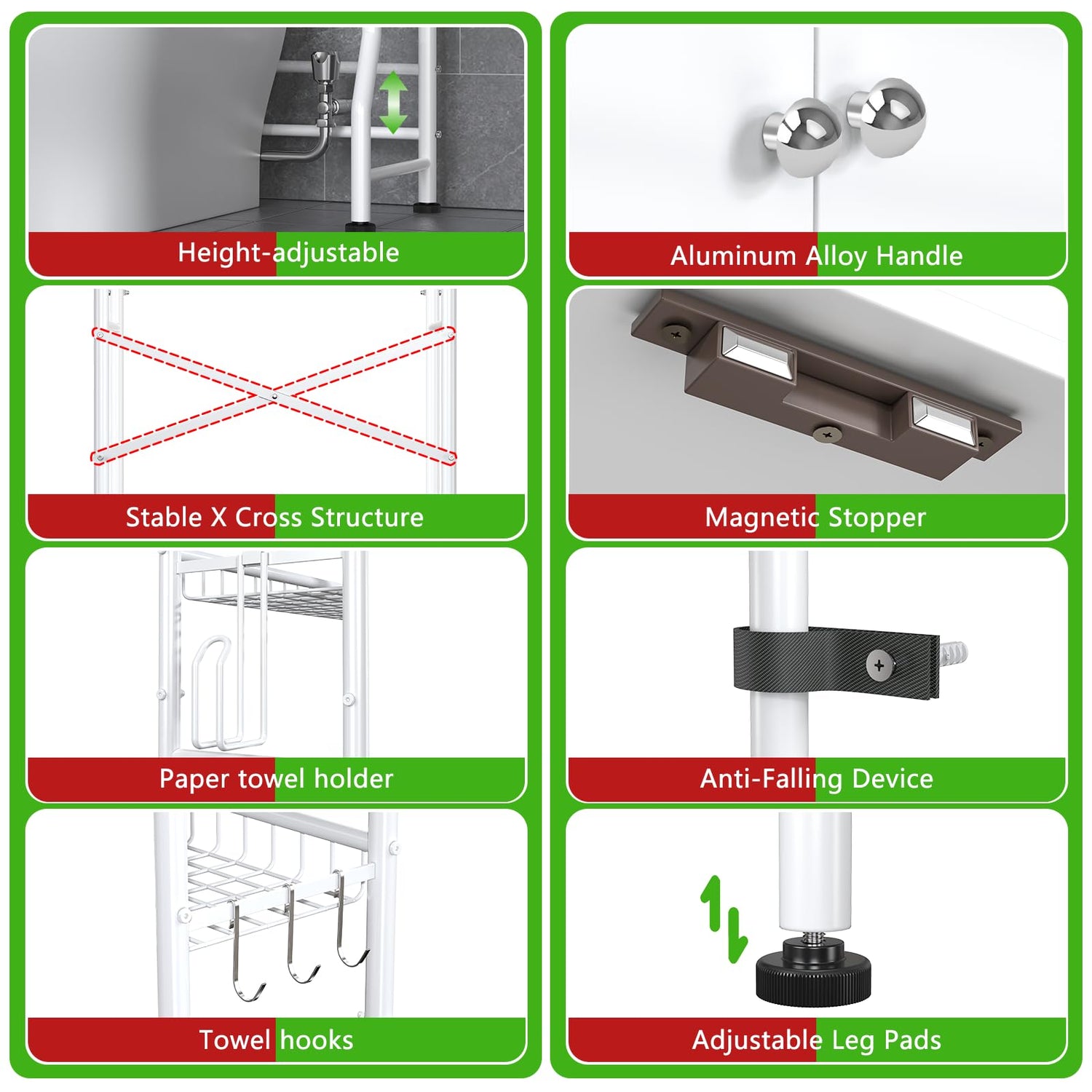 - 【Easy Assembly & Multi-Functional】This bathroom cabinet over the toilet comes with a detailed installation guide (including numbered parts & visual instructions), making setup effortless and frustration-free. The over toilet bathroom organizer cabinet maximizes storage for bathrooms, living room,kitchens, laundry rooms, dorms, offices, and more – use it as a space-saving rack for towels, toilet paper, dish rack and daily necessities, privacy medicine or cleaning supplies. Perfect solution for apartments and small homes!