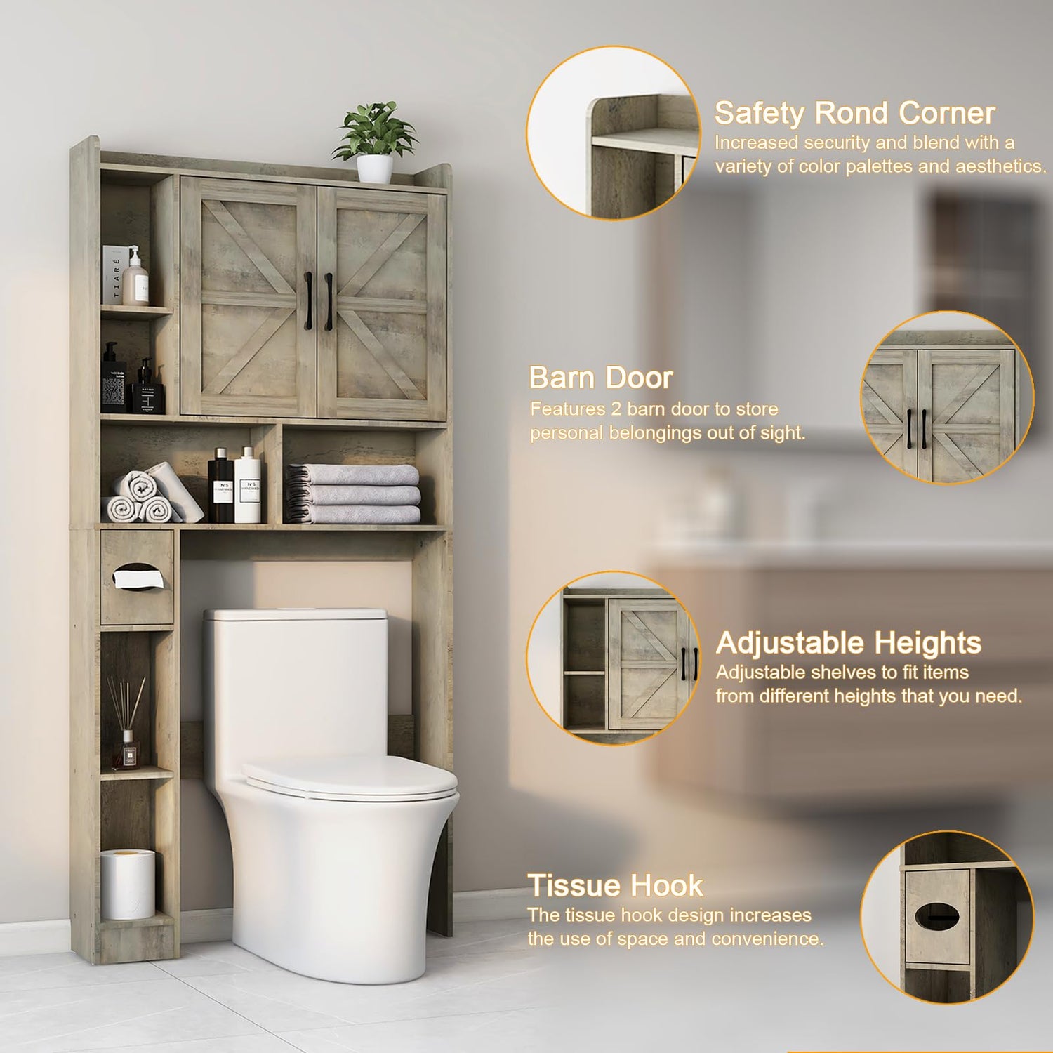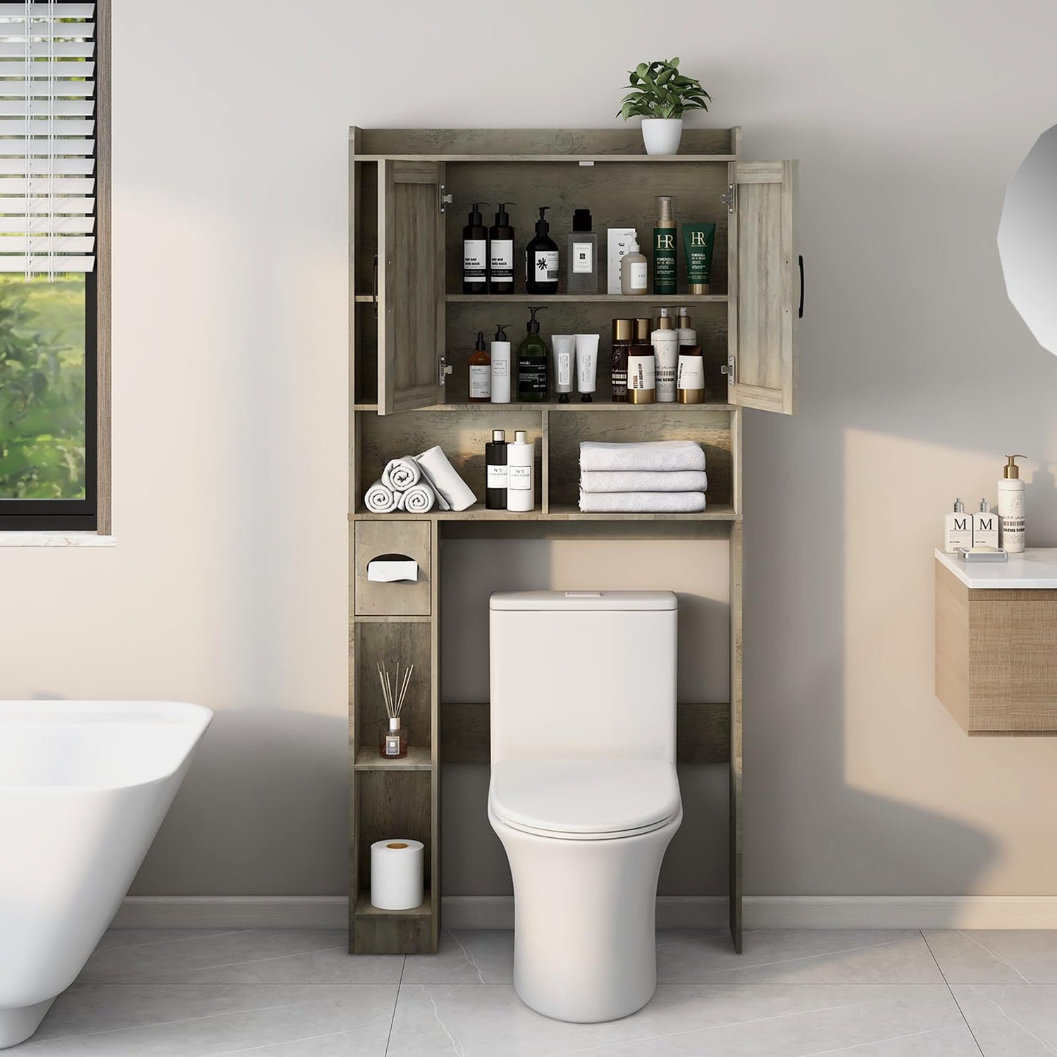 Transform your bathroom today with the Vabches Grey Farmhouse Over The Toilet Storage Cabinet, where style meets functionality. Discover how easy it is to achieve an organised and stylish space.