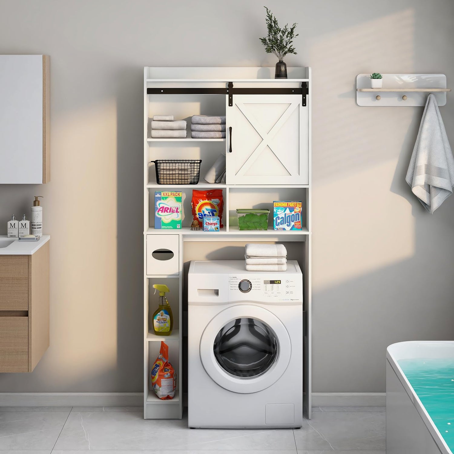 Vabches Farmhouse Over The Toilet Storage Cabinet with Sliding Barn Door and Toilet Paper Holder