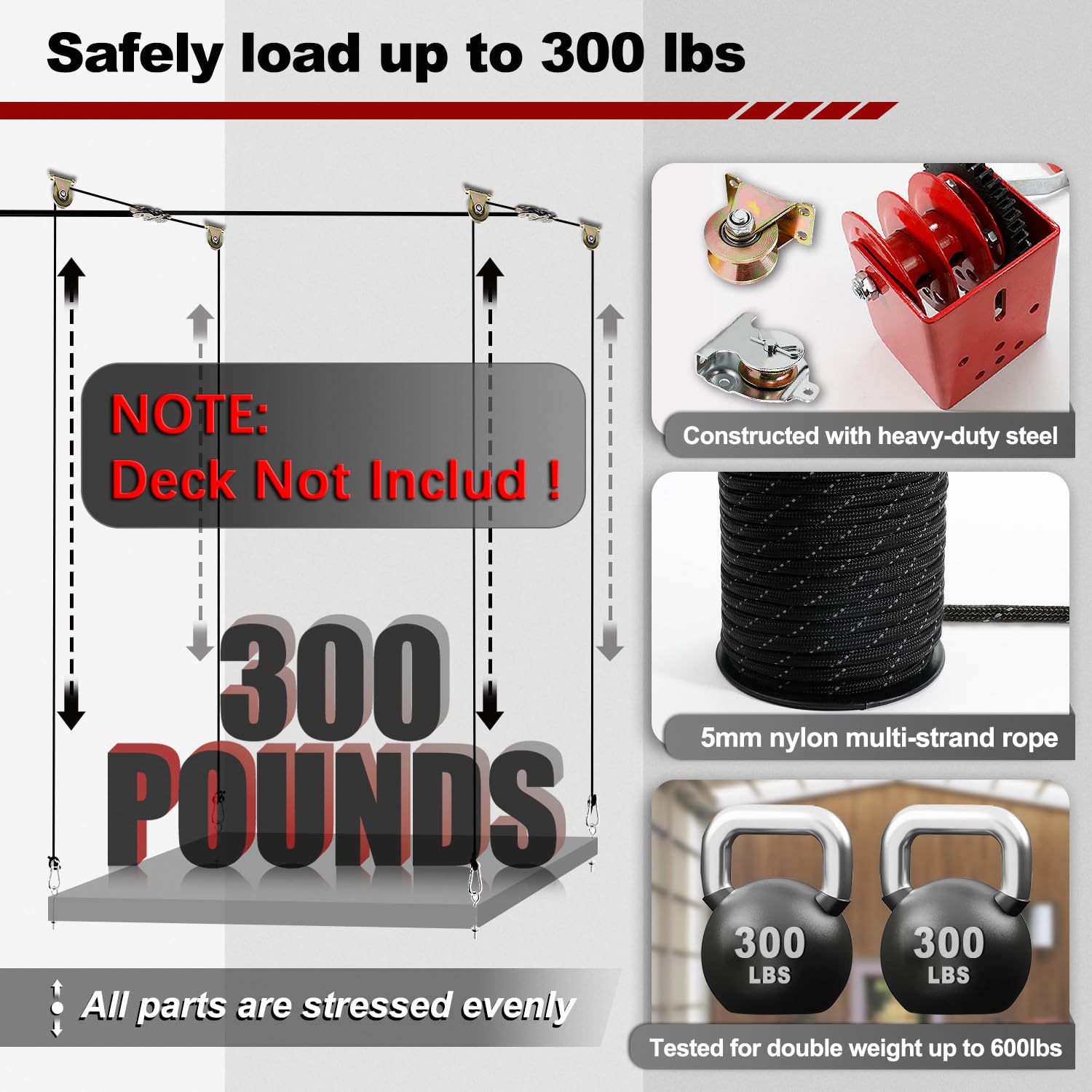 Overhead Garage Storage Lift Hoist, Heavy-duty Ceiling Mounted Garage Storage Lift System for Organization - Supports 8-16ft Ceilings, 300lbs Weight, Easy Installation & Operation (Deck Not Includ)
