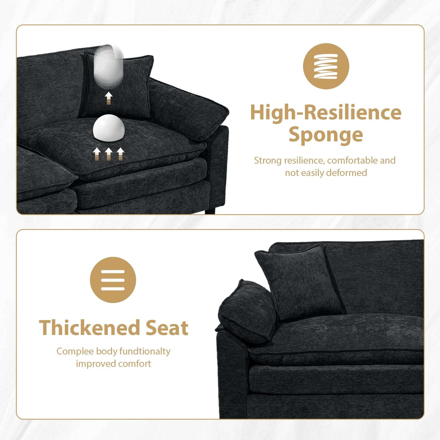 Oversize Loveseat Sofa Couch, 79'' Chenille Deep Seat Cloud Couch with Pillows and Cushion, Two Seater Comfy Love Seat for Living Room Bedroom Office,Black