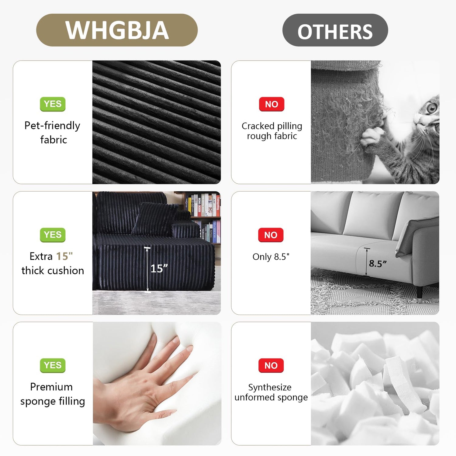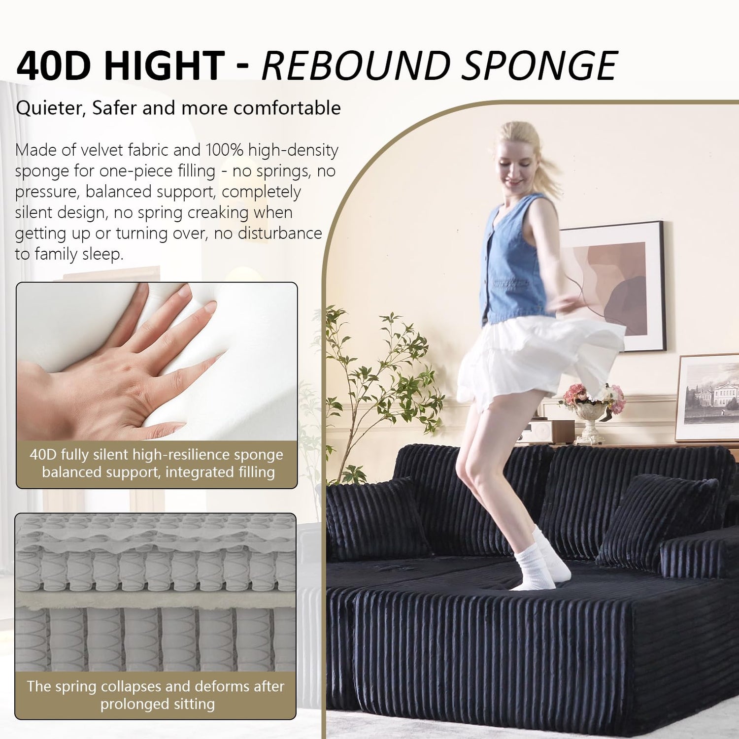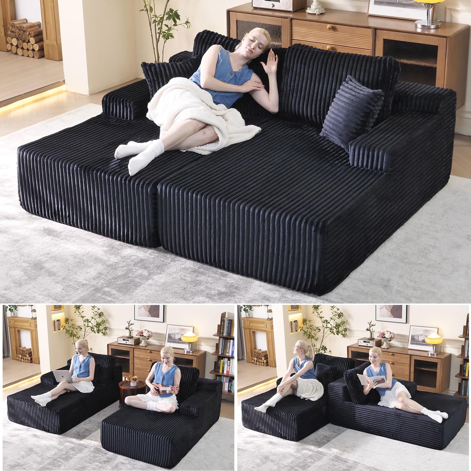 Oversized 79” Double Chaise Lounge Sofa Bed, Deep Seat Corduroy Cloud Loveseat Chair, No Assembly, Plush Upholstered Sleeper for Living Room or Bedroom (Black)