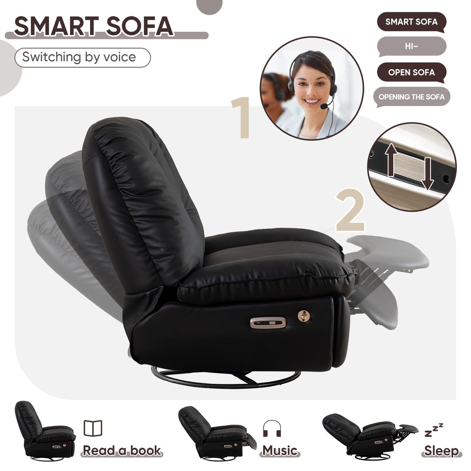 Oversized Electric Recliner Chair, 360 Swivel Rocking Glider Rocker for Adults Modern Ergonomic Lounge for Living Room Phone Stand& Smart Control Theater Seating (Black, Silicone Leather)