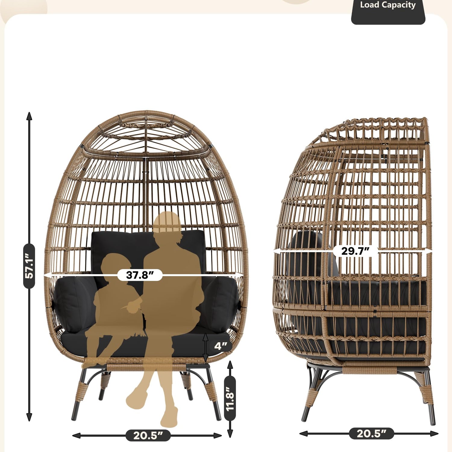 - Spacious & Oversized Comfort: This oversized egg chair outdoor is designed with extra room to let you stretch out and relax. The spacious seat and deep curved back provide a cozy-like experience, perfect for reading, napping, or enjoying the breeze.